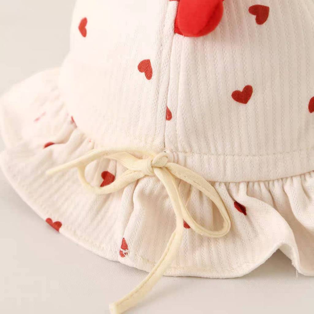[ส่งด่วน] หมวกเด็ก 1-3 ขวบ รอบศีรษะ 48-50 ซม. หมวกเด็กผู้หญิง ลายหัวใจ แต่งหูหัวใจ หมวกปีกระบาย ขนาดปรับได้ มี 4 สี