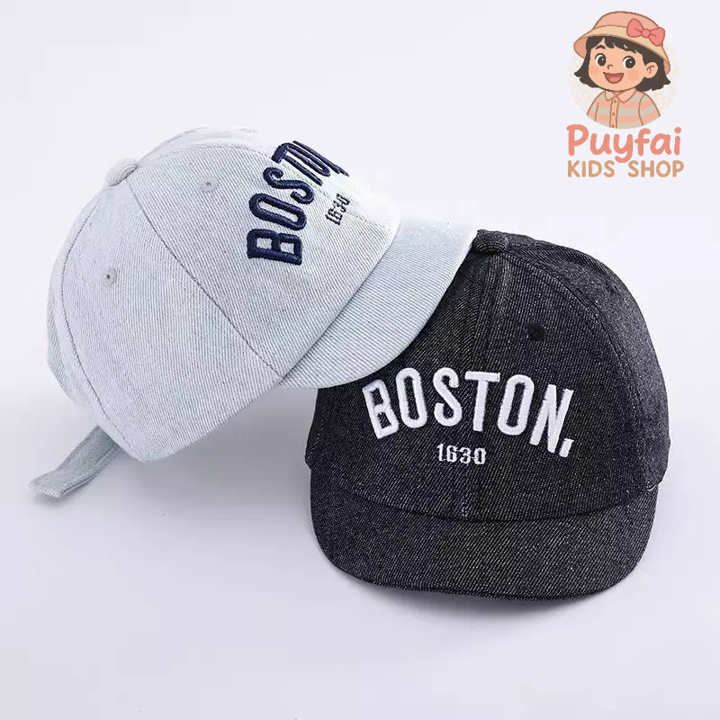 [ส่งด่วน] หมวกเด็กผ้ายีนส์ ใส่ได้ 1-3 ปี รอบศีรษะ 48–50 ซม. ปัก BOSTON 1630 หมวกเด็กทรงเบสบอล หมวกแฟชั่นเด็ก ปรับขนาดได้