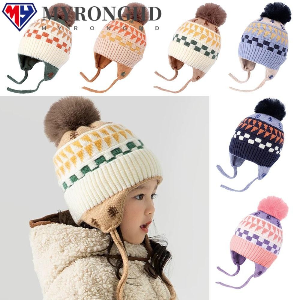 Myronghd หมวกอุ่นเด็ก, หมวกป้องกันหูผ้าขนสัตว์นุ่ม, ฤดูหนาวที่อบอุ่นเด็ก หมวกไหมพรม เด็กวัยหัดเดิน