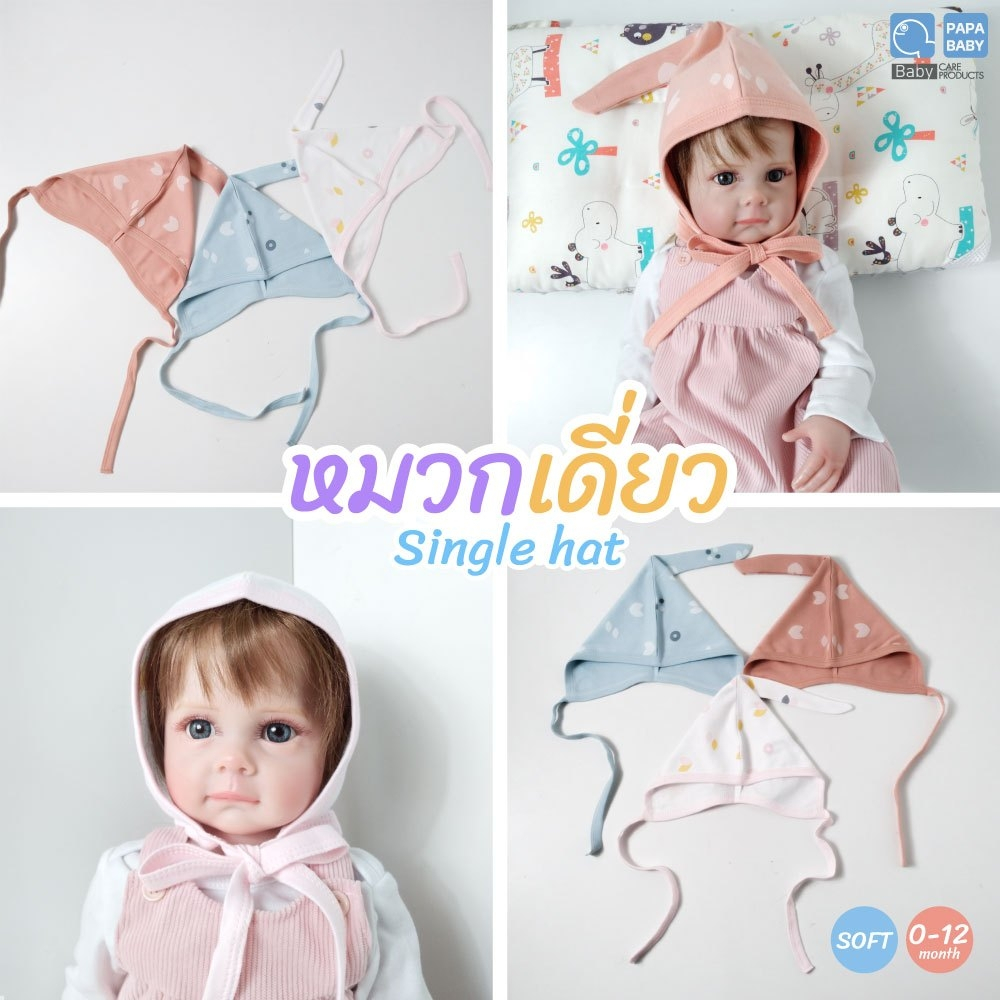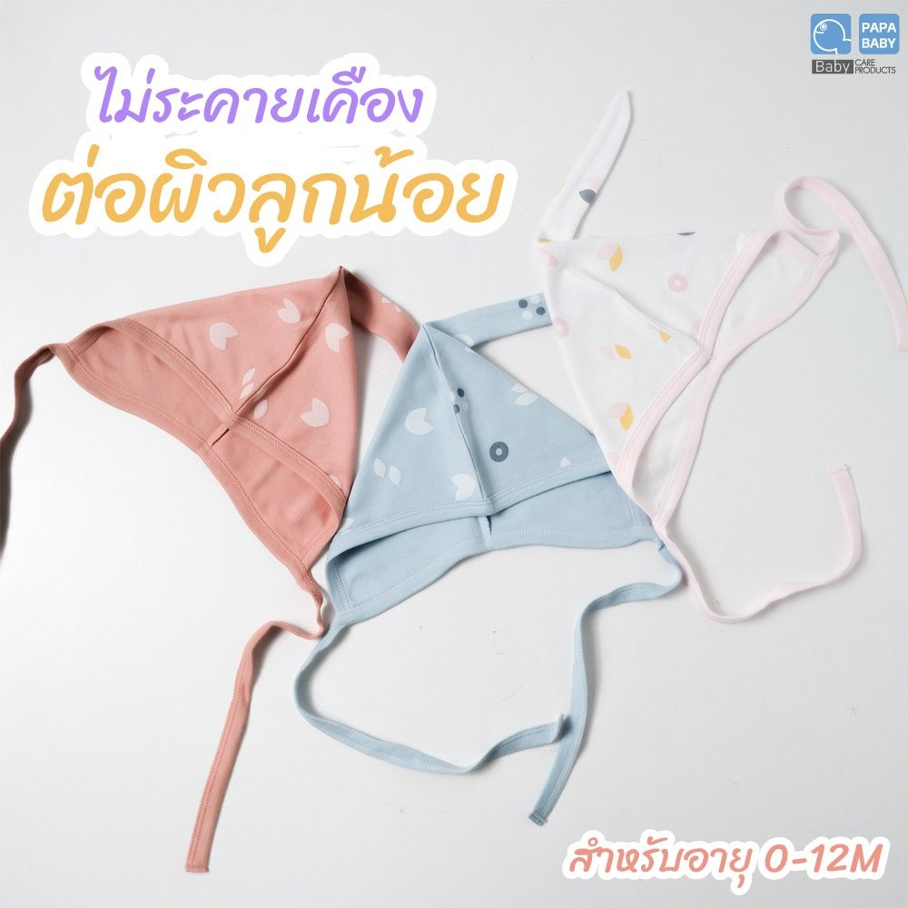 PAPABABY หมวกเด็กอ่อน แบบผูกคาง เนื้อผ้า Cotton100% รุ่นHATUA09 นุ่ม รุ่น สบายไม่ระคายเคืองผิวลูกน้อย