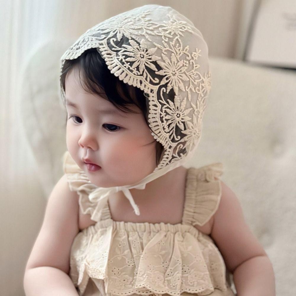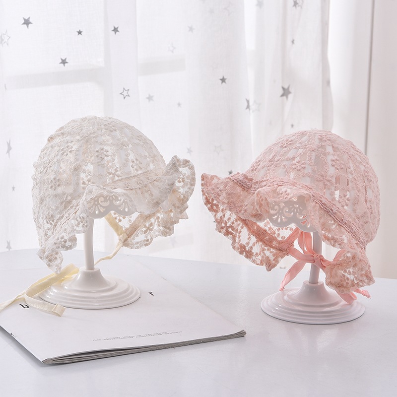 หมวก ผ้าลูกไม้ ลายดอกไม้ สําหรับเด็กทารก