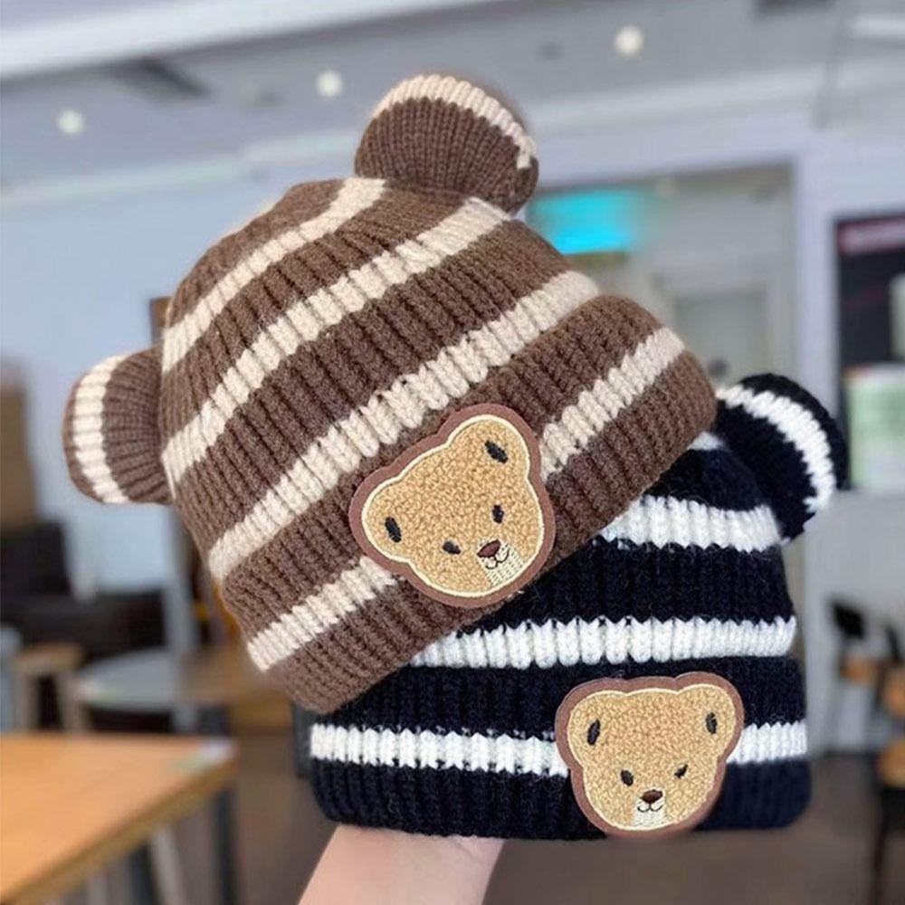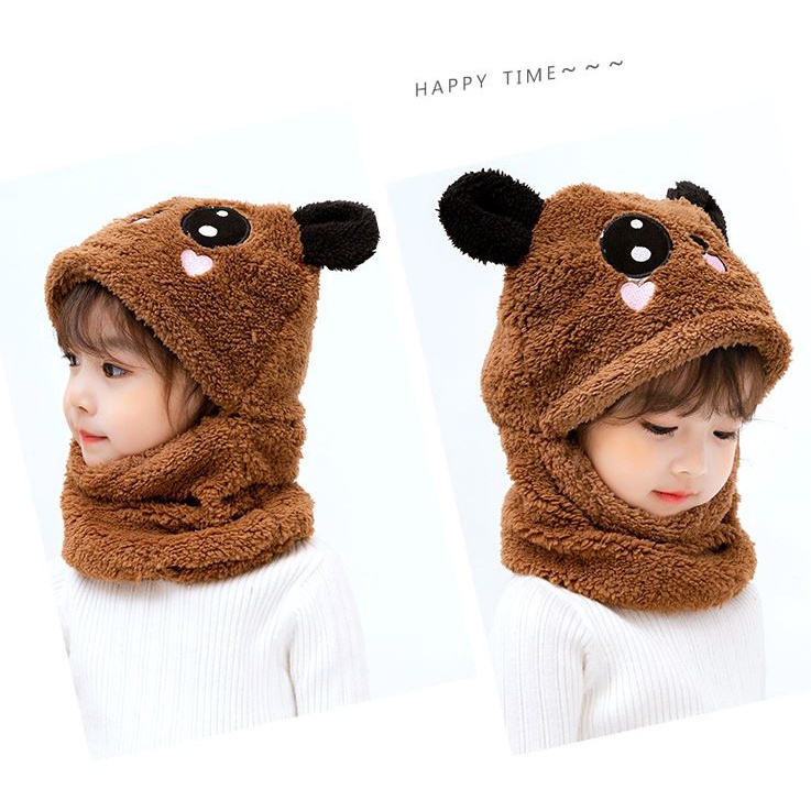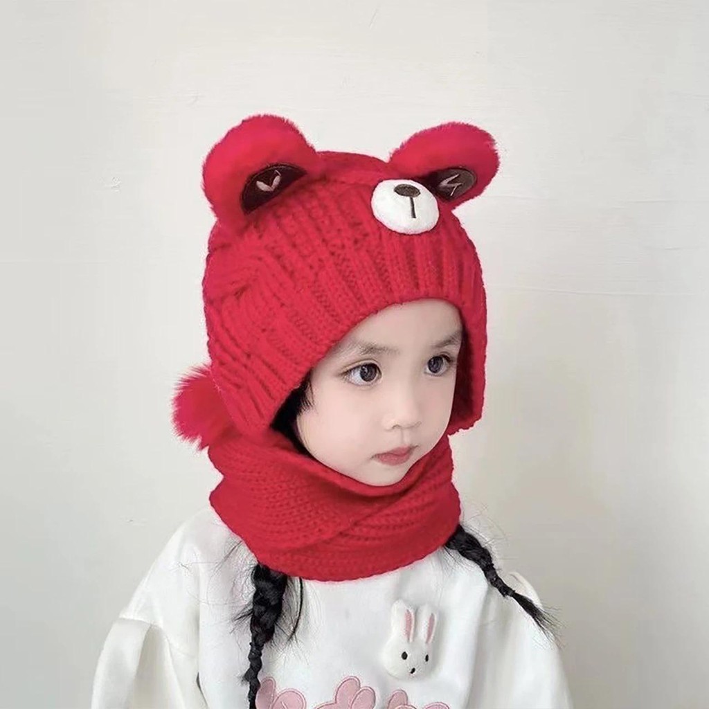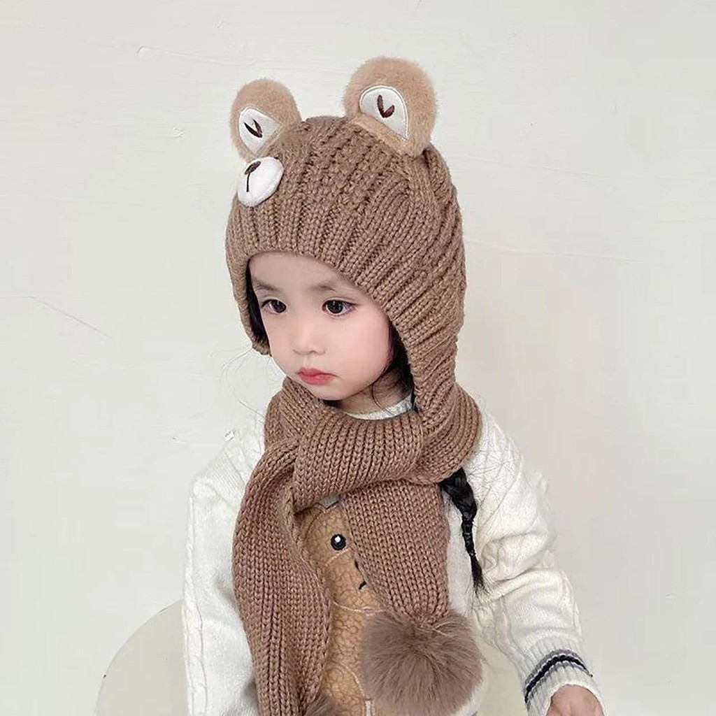 หมวกถักลายการ์ตูนหมีและผ้าพันคออุ่นสำหรับเด็กวัยหัดเดินในฤดูหนาว