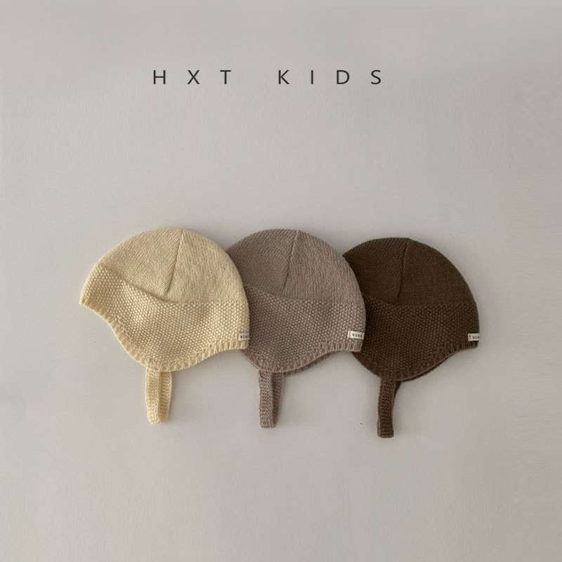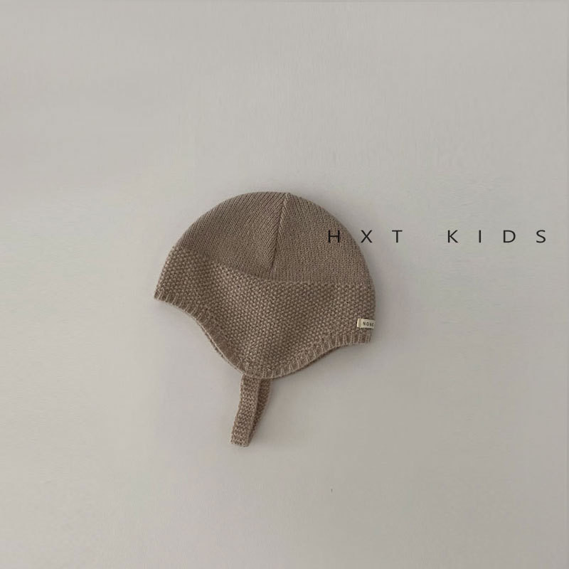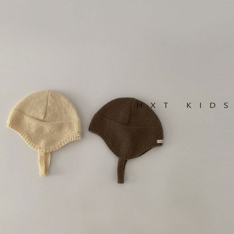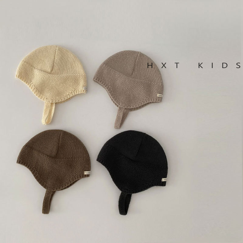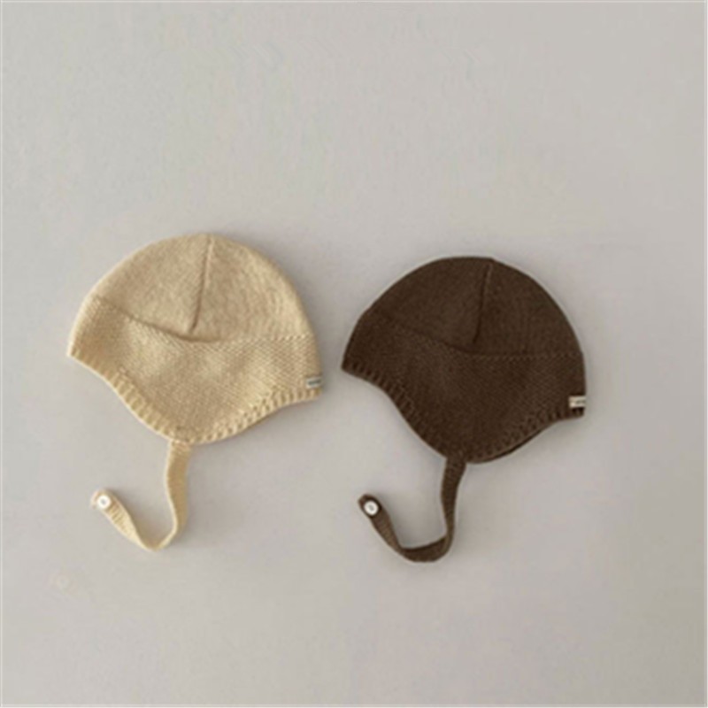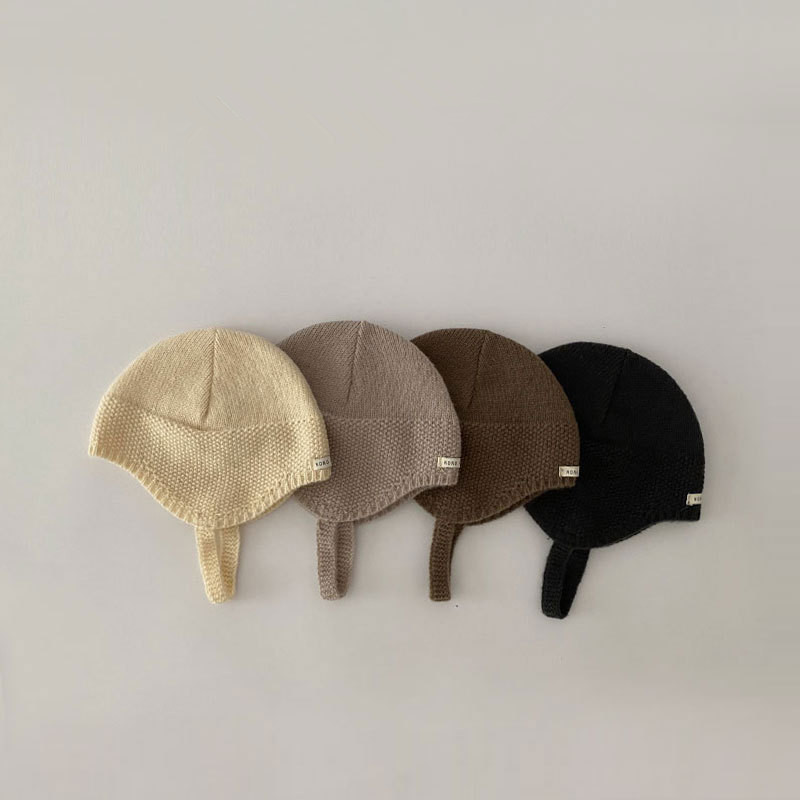 หมวกถักสำหรับเด็กอายุ 3-15 เดือน สไตล์ฤดูใบไม้ร่วง อบอุ่น มีป้ายขนาดเล็กป้องกันหู