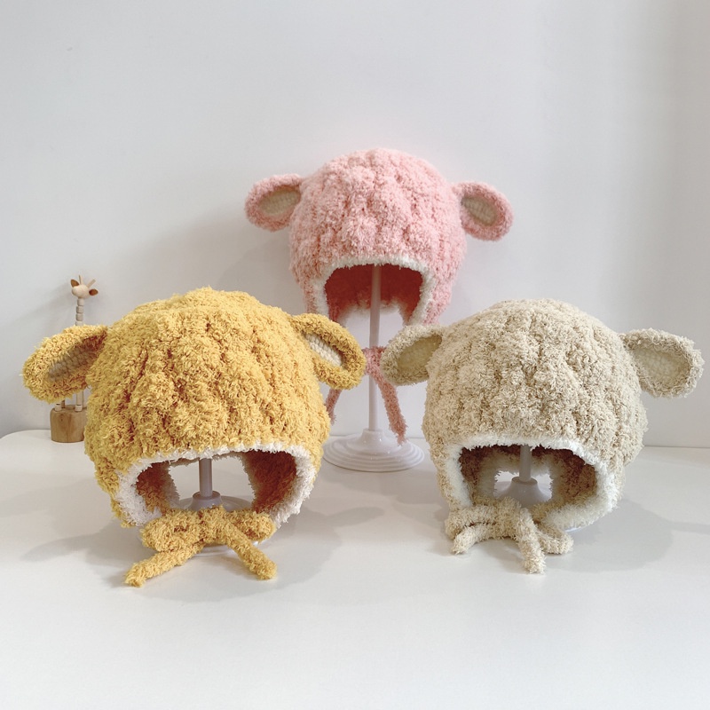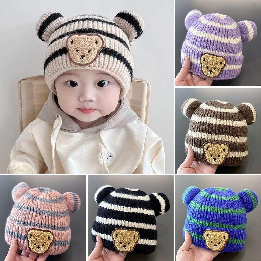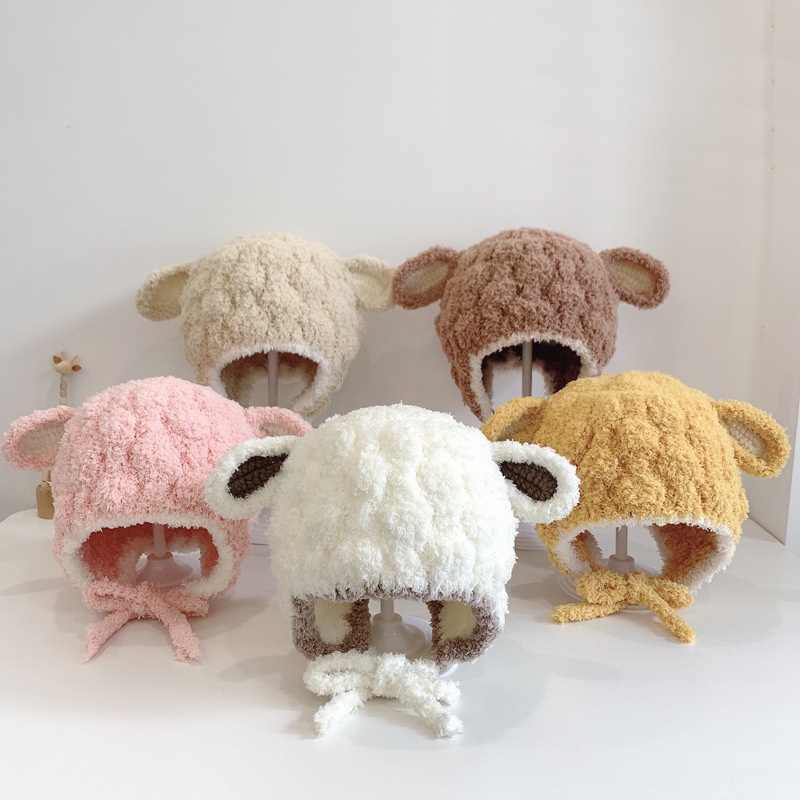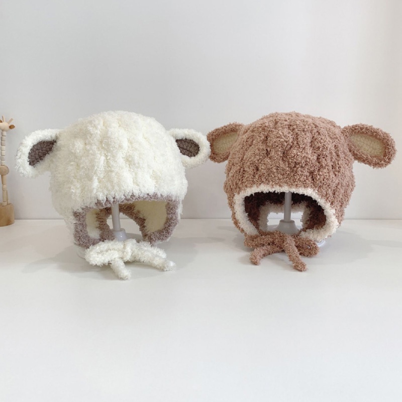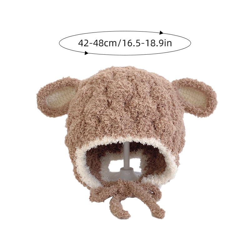 หมวกถักสำหรับเด็กอายุ 3-15 เดือน สไตล์ฤดูใบไม้ร่วง อบอุ่น มีป้ายขนาดเล็กป้องกันหู