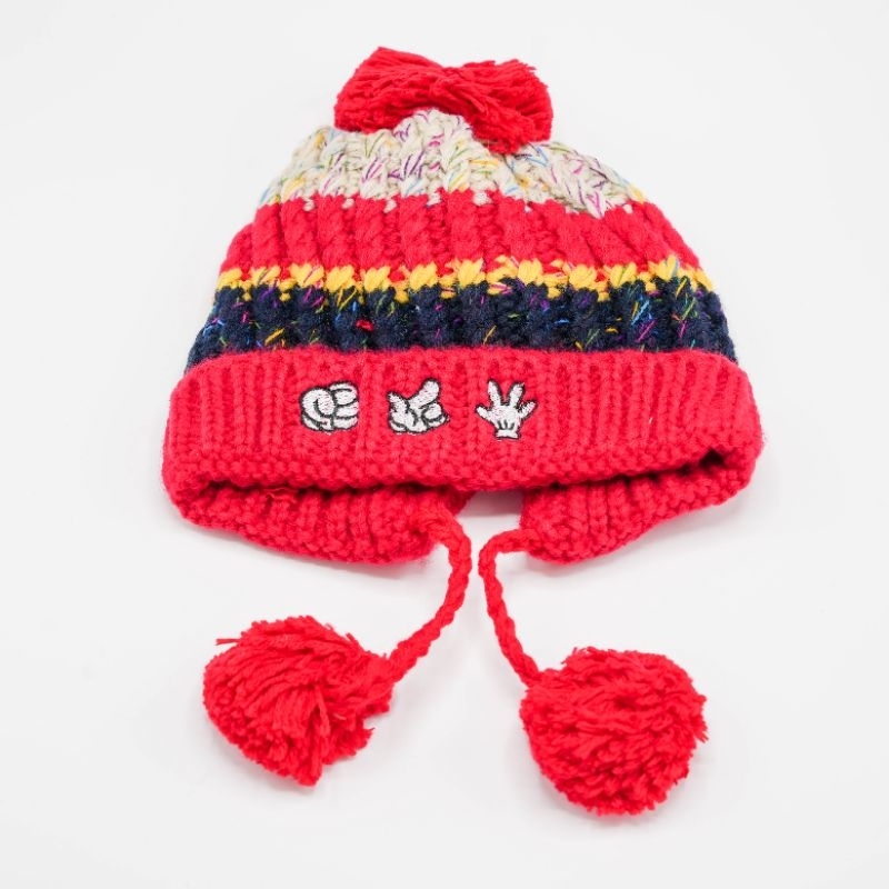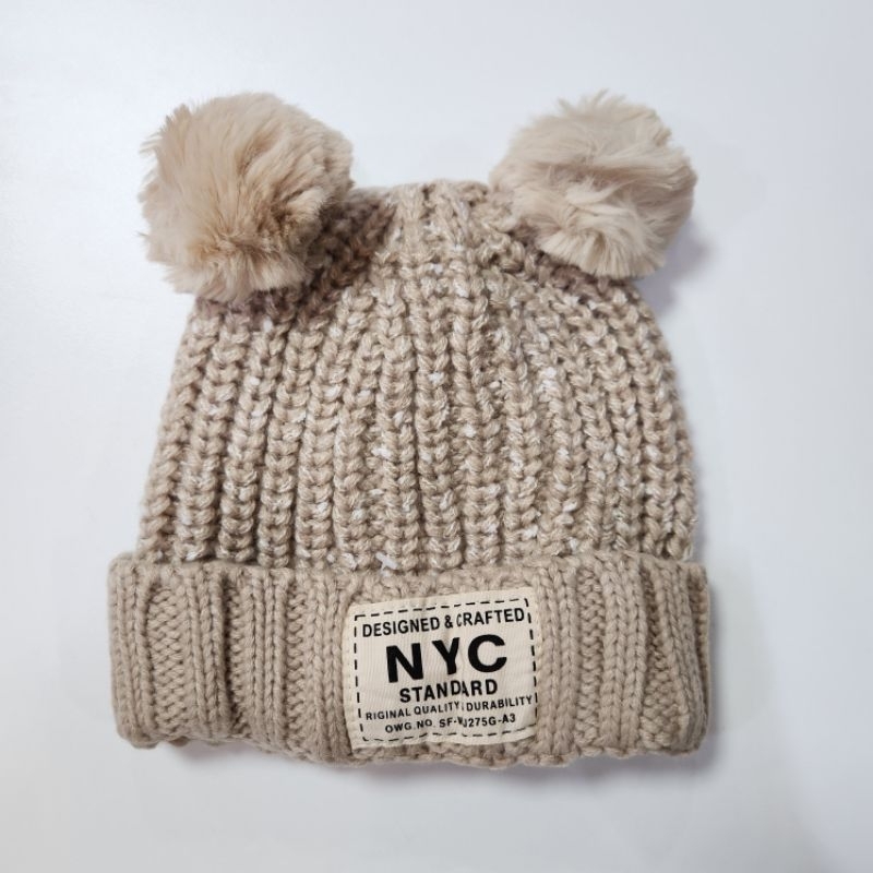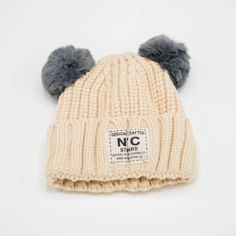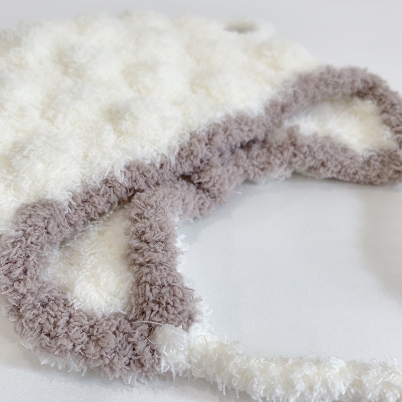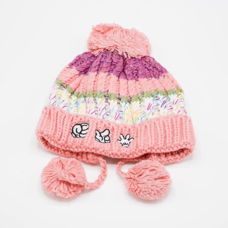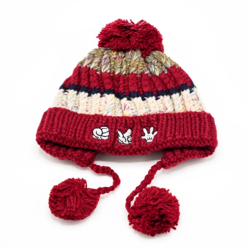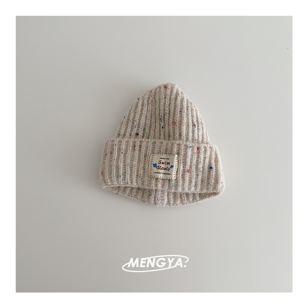 หมวกถักไหมพรมเด็ก สไตล์เกาหลี ป้ายหนังลายจุดสีสัน กันลมกันหนาว