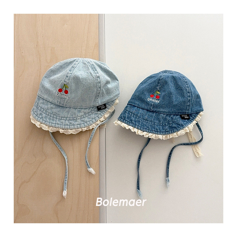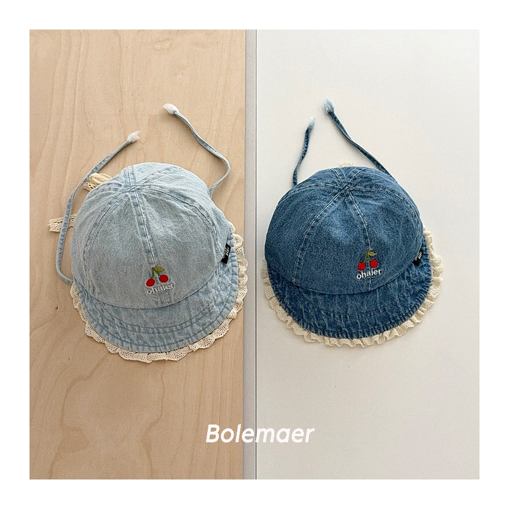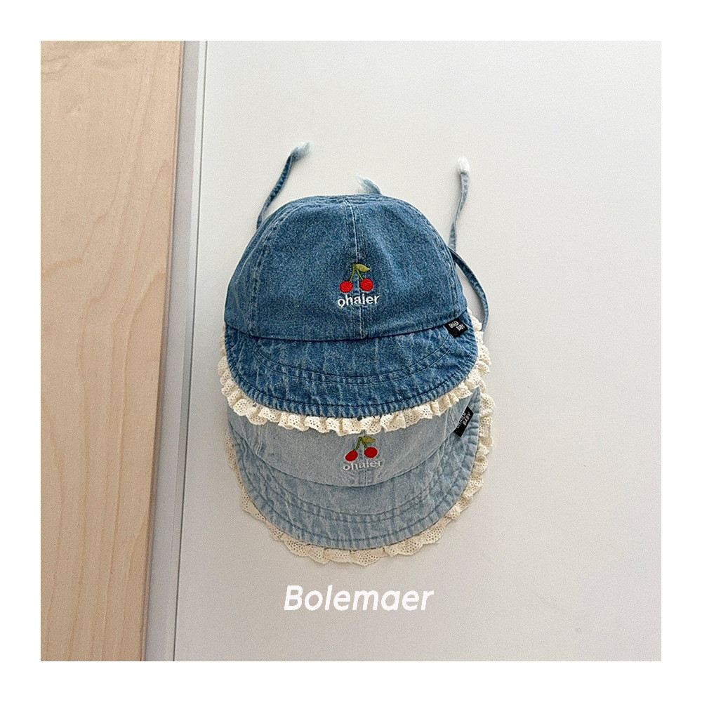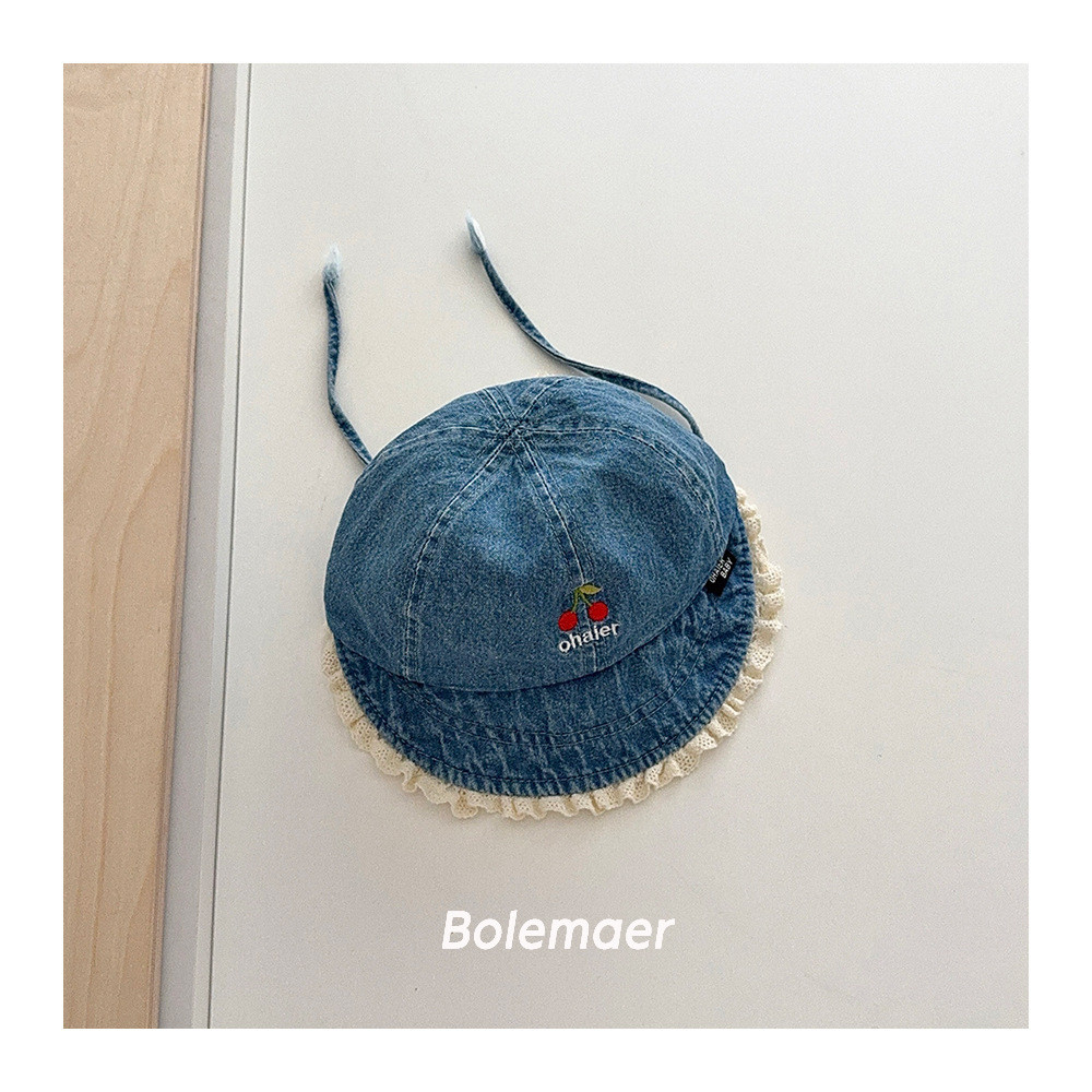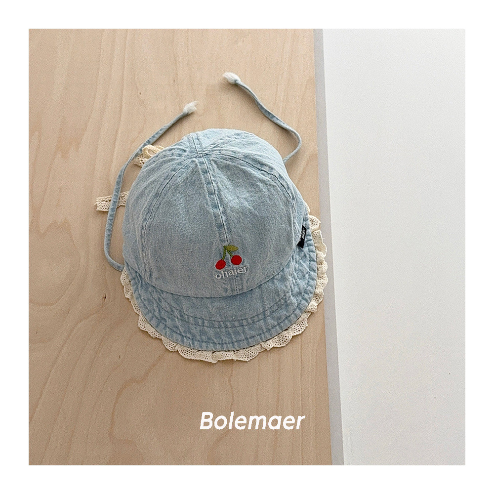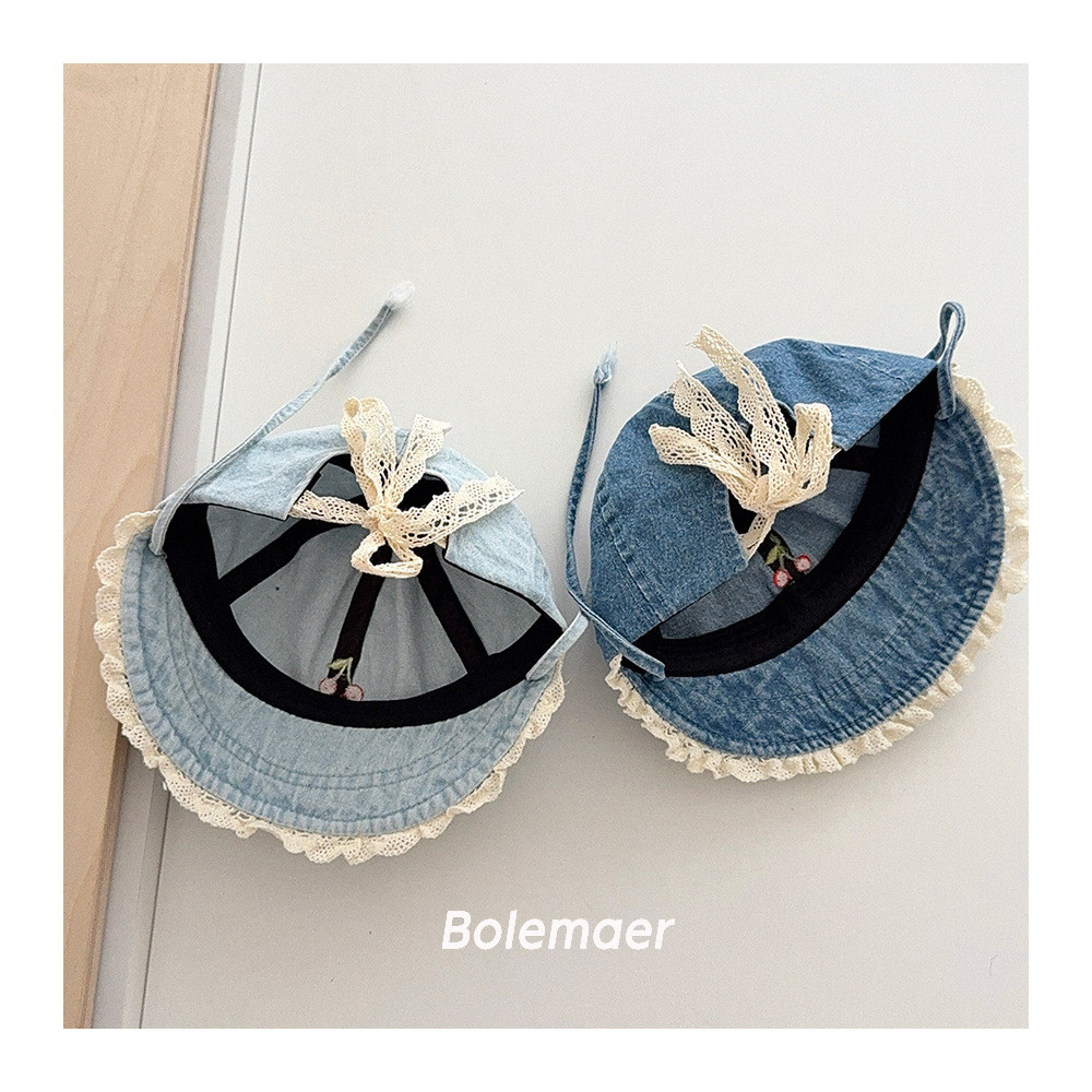 หมวกชาวประมงสำหรับเด็ก ออกแบบย้อนยุค ลายปักขอบลูกไม้ สำหรับสวมใส่กลางแจ้ง