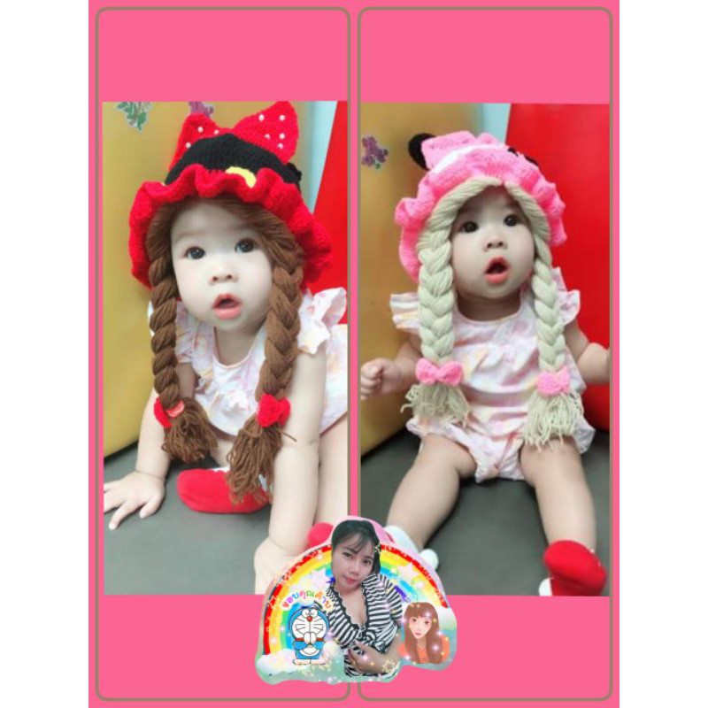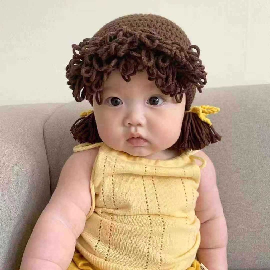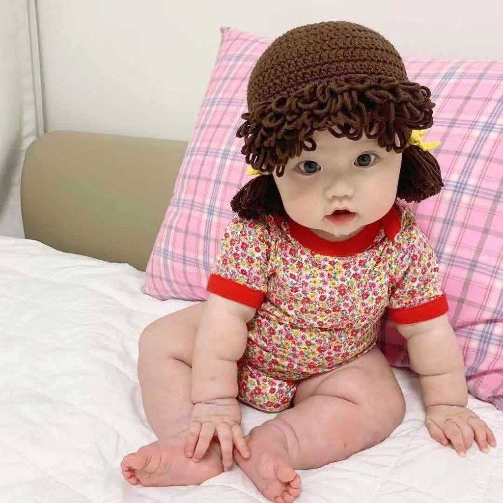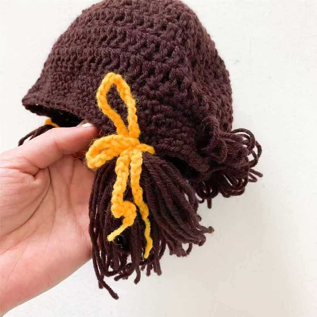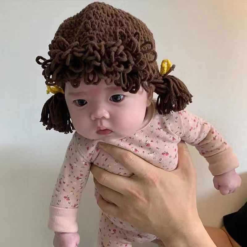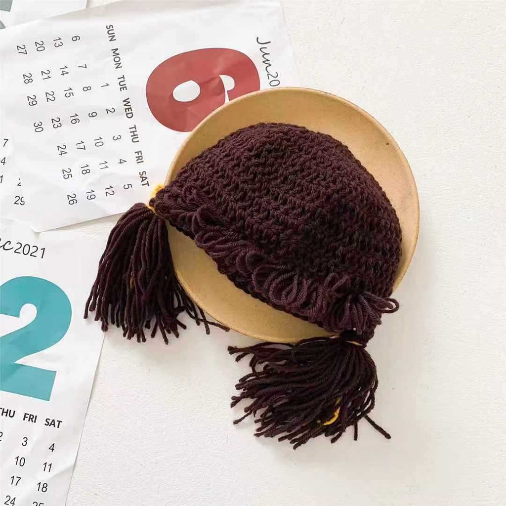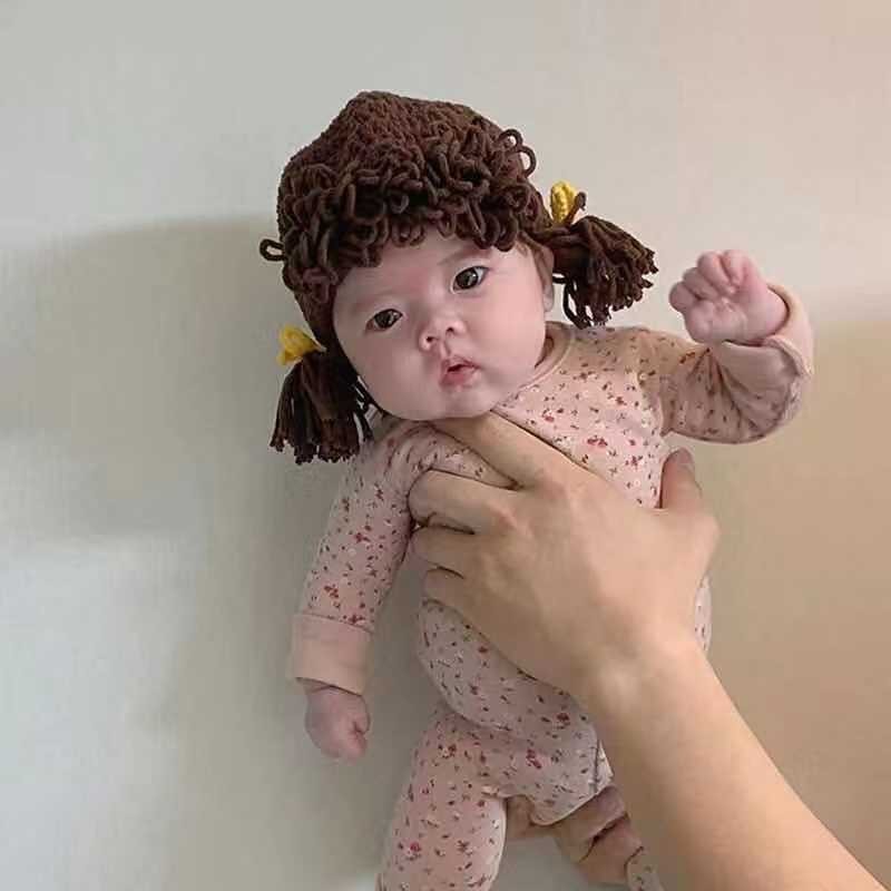 หมวกเด็กผู้หญิงวิกผมน่ารักหมวกเด็กสาวถักหมวกขนสัตว์
