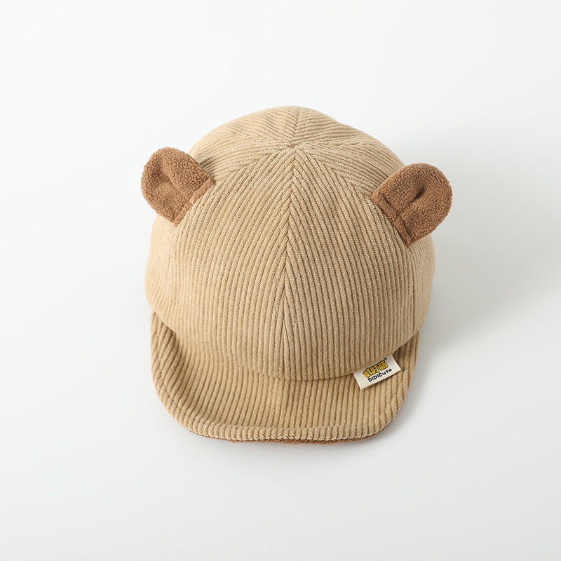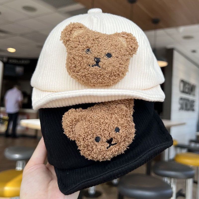 หมวกเบสบอล ผ้าลูกฟูก แบบนิ่ม ลายการ์ตูนหมี ให้ความอบอุ่น สไตล์เกาหลี สําหรับเด็ก