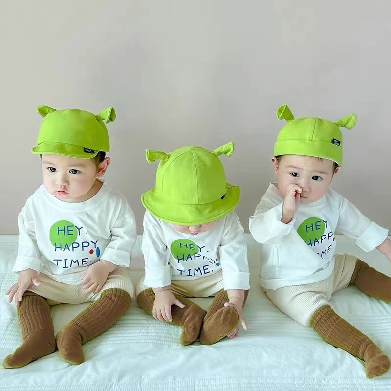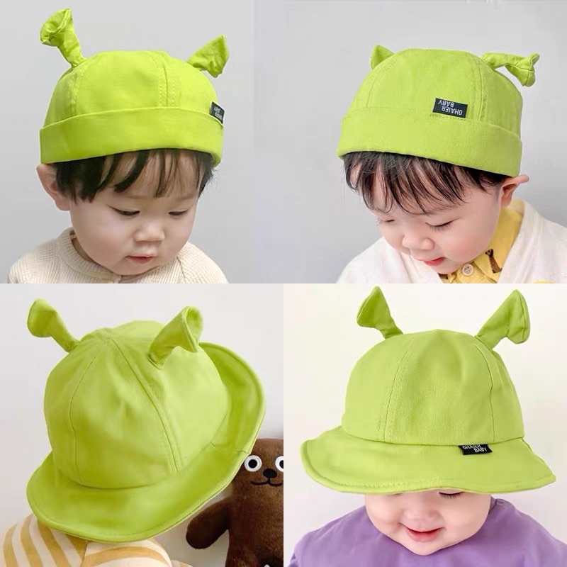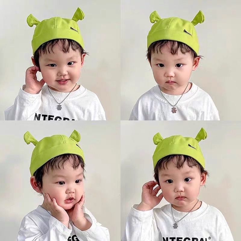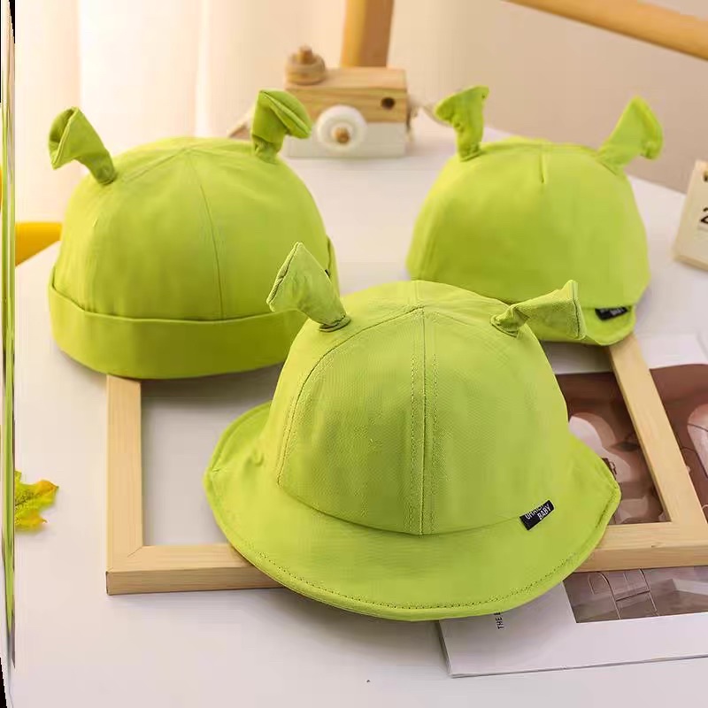 🧑🎤พร้อมส่ง👒 หมวกเด็กเชร็คยักษ์เขียว กันแดด น่ารักมากๆ มี3แบบให้เลือก