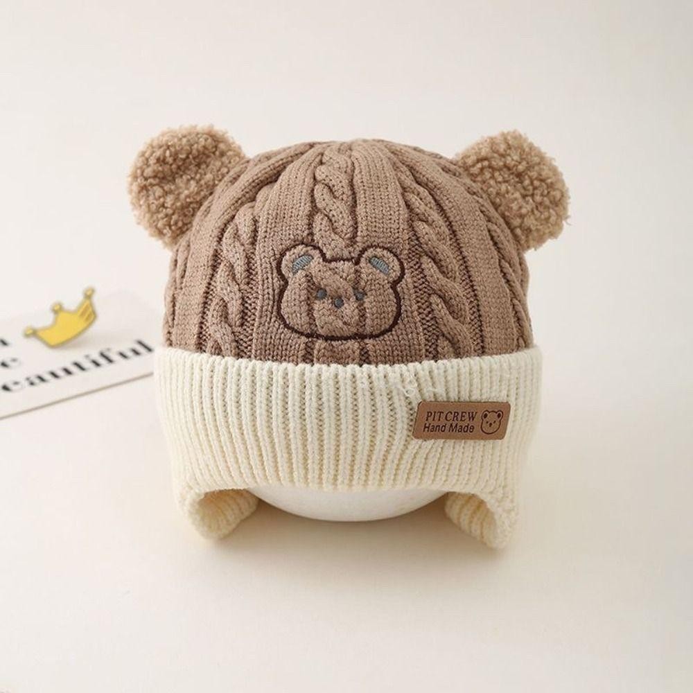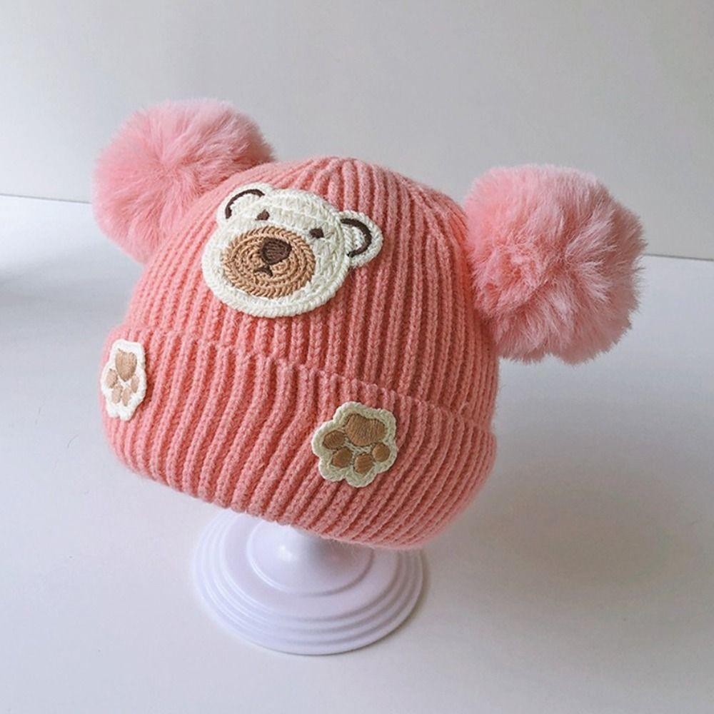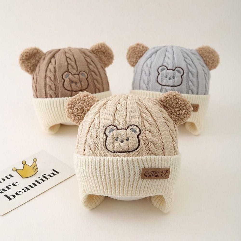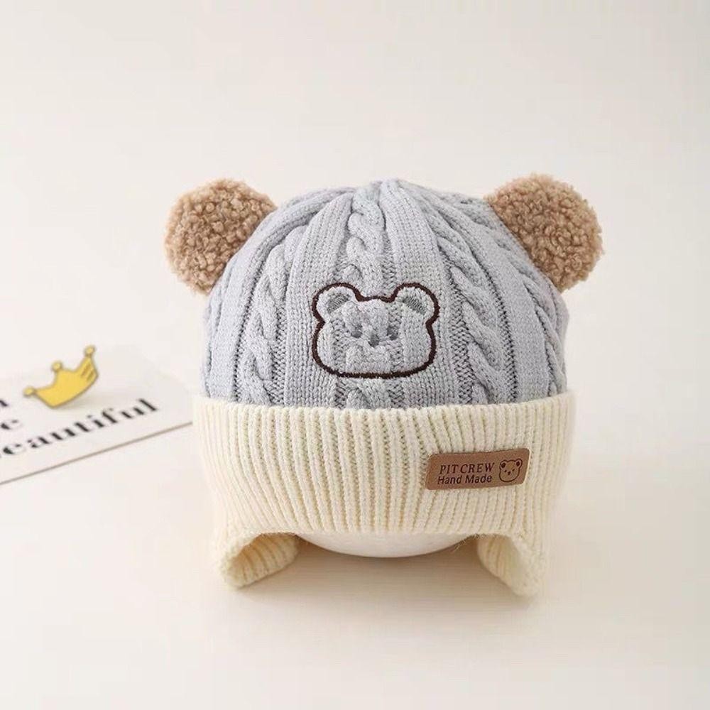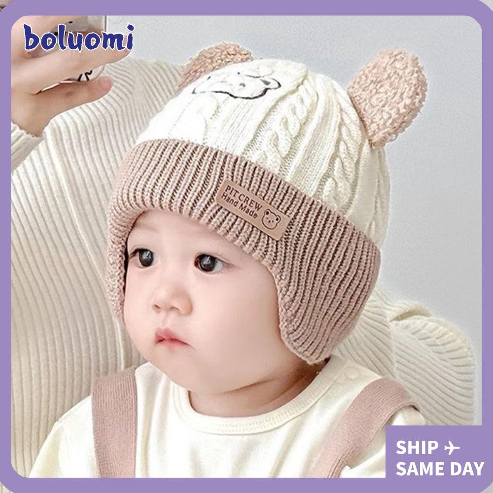 โบลูโอ หมวกอบอุ่น,ฤดูหนาวเย็นหลักฐานถักหมวกปิดหูกันหนาว,แฟชั่นน่ารักหมีเด็กวัยหัดเดินกํามะหยี่ซับป้องกันหูหมวกสําหรับทารก