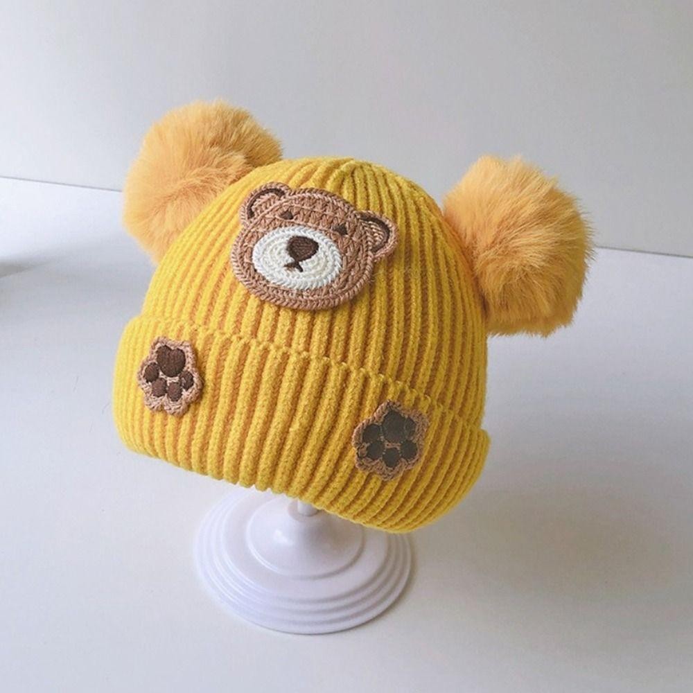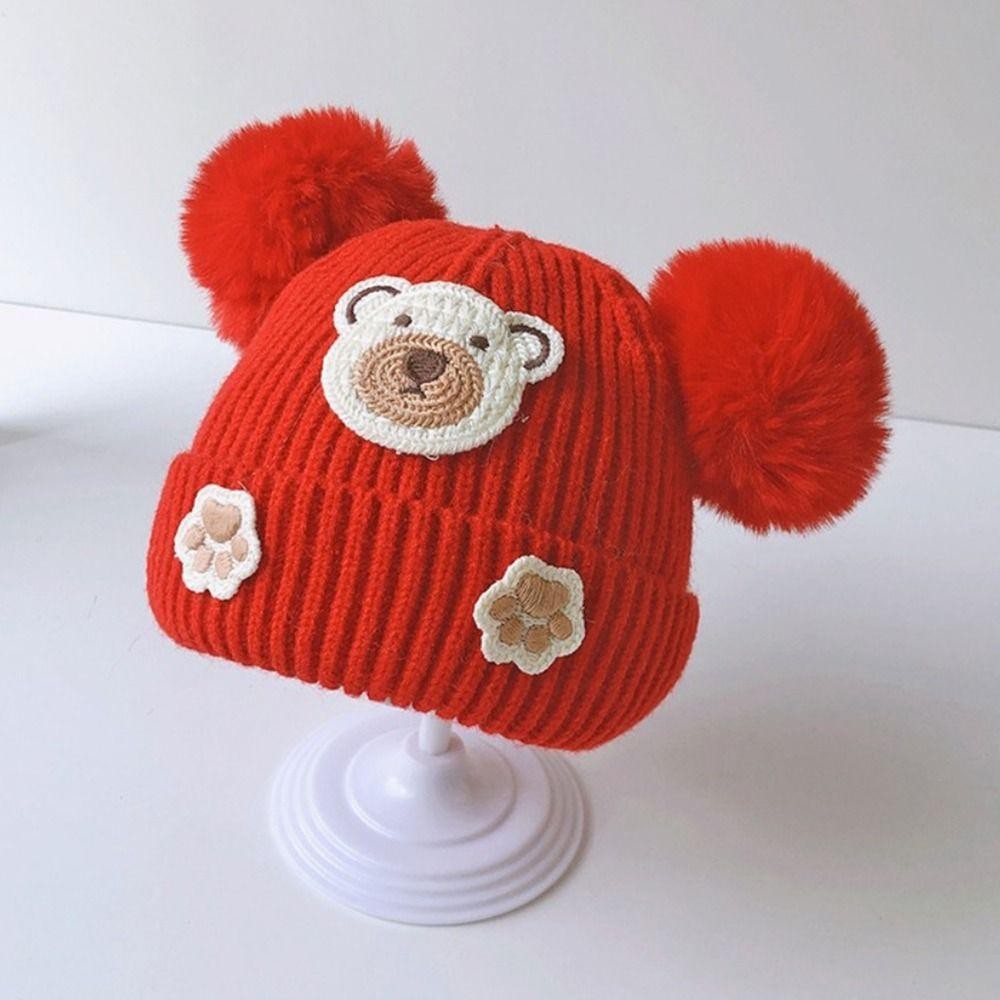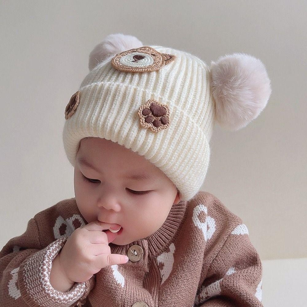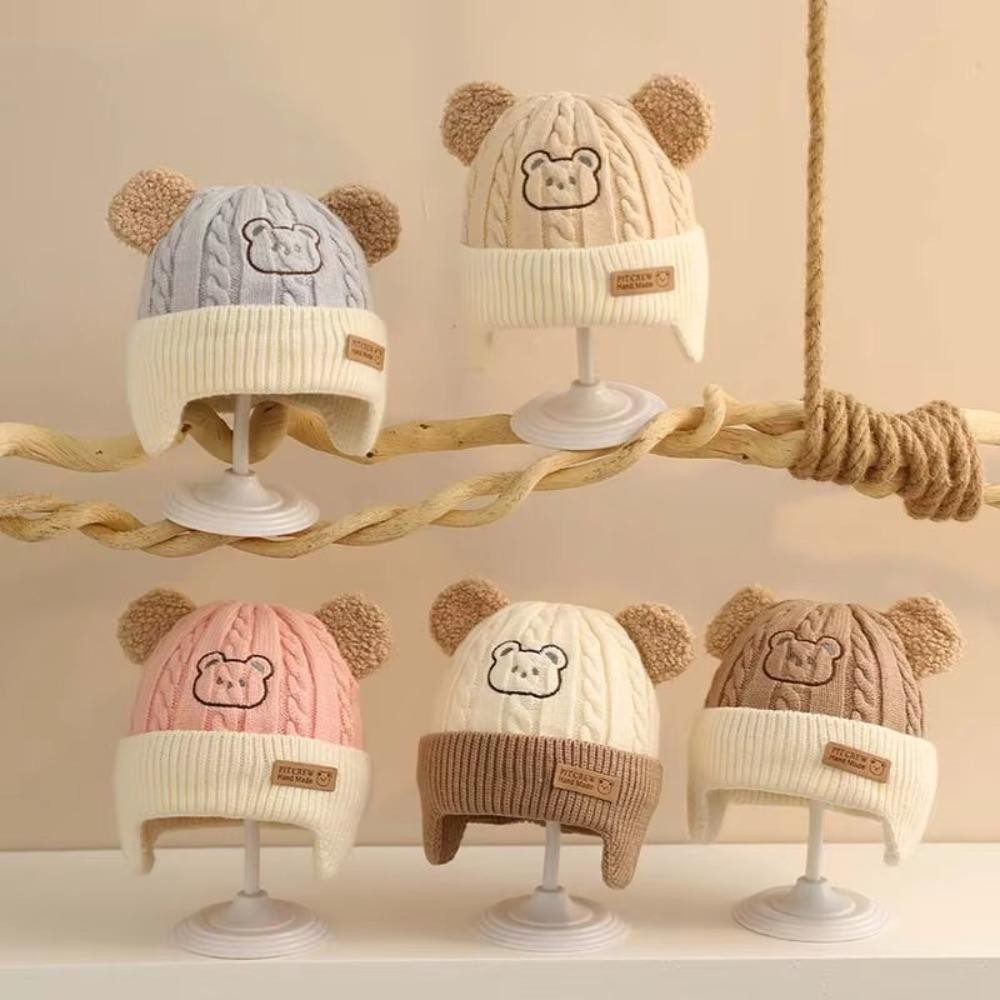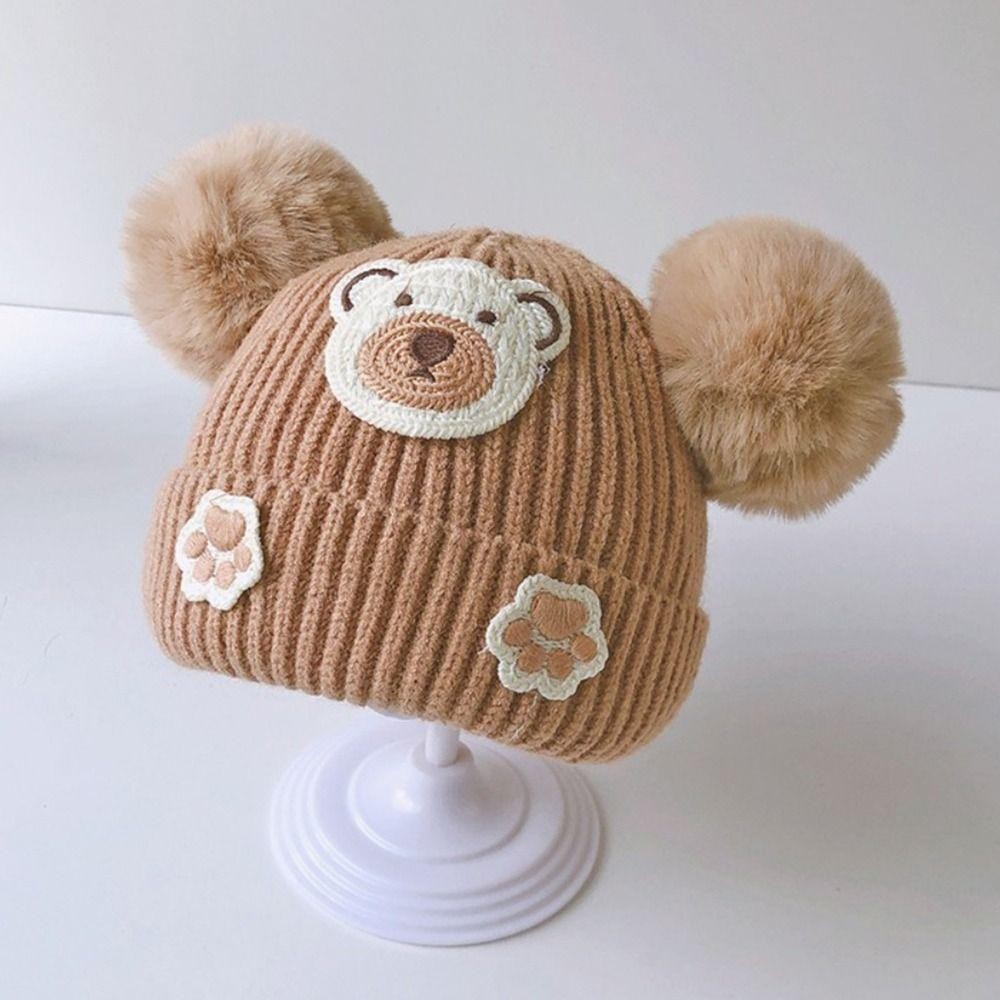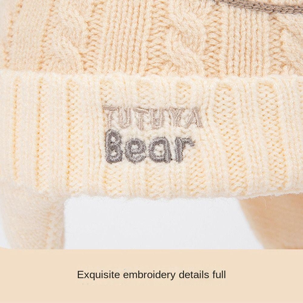 โบลูโอ หมวกอบอุ่น,ฤดูหนาวเย็นหลักฐานถักหมวกปิดหูกันหนาว,แฟชั่นน่ารักหมีเด็กวัยหัดเดินกํามะหยี่ซับป้องกันหูหมวกสําหรับทารก