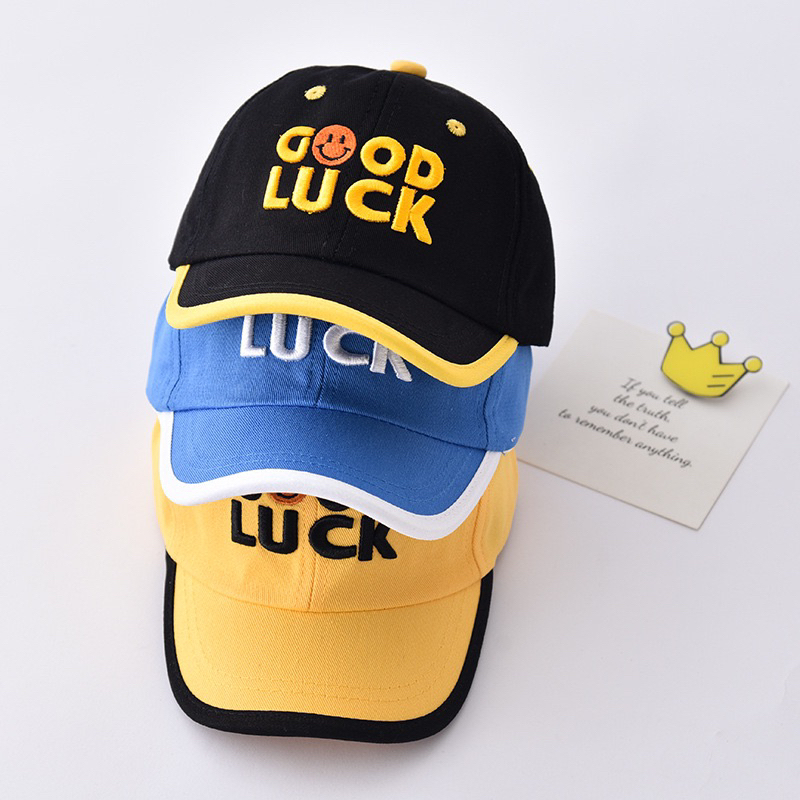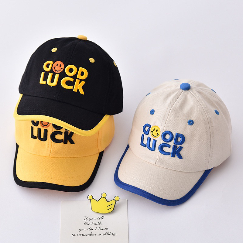 หมวกแก๊ปเด็กปักลาย Goodluck เหมาะสำหรับเด็กอายุ 8 เดือน-4 ขวบ ทันสมัย และกันแดดได้