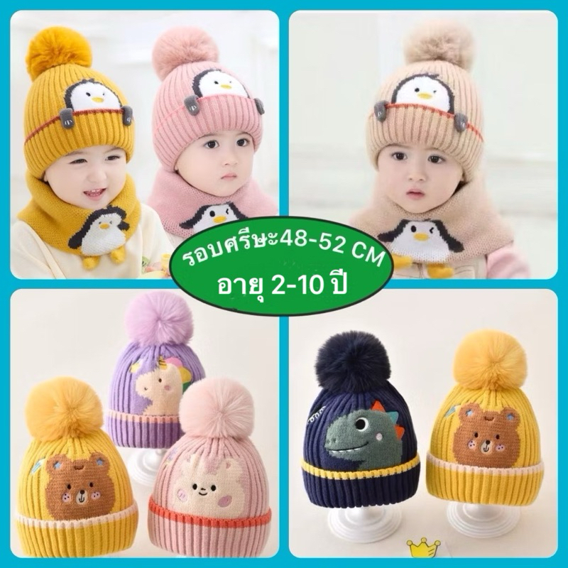 หมวกไหมพรมกันหนาวเด็ก รอบศรีษะ 48-52 CM อายุประมาณ 2-10 ปี