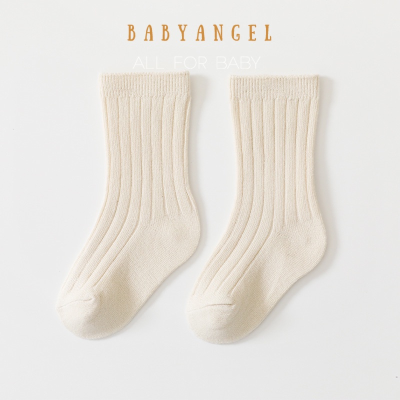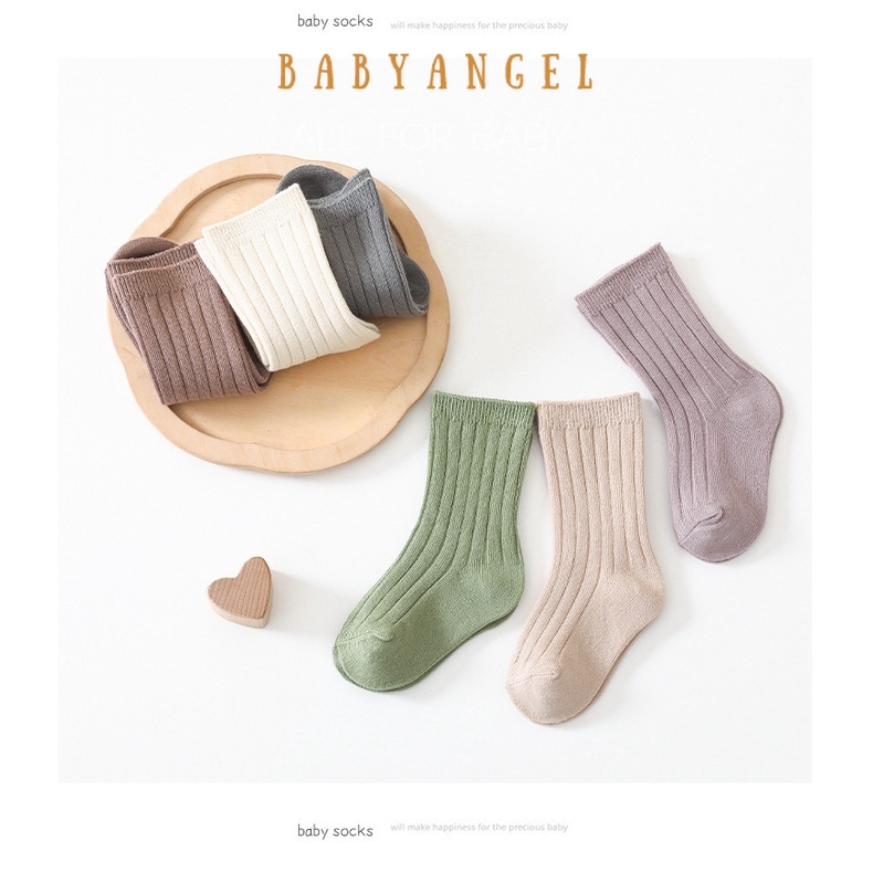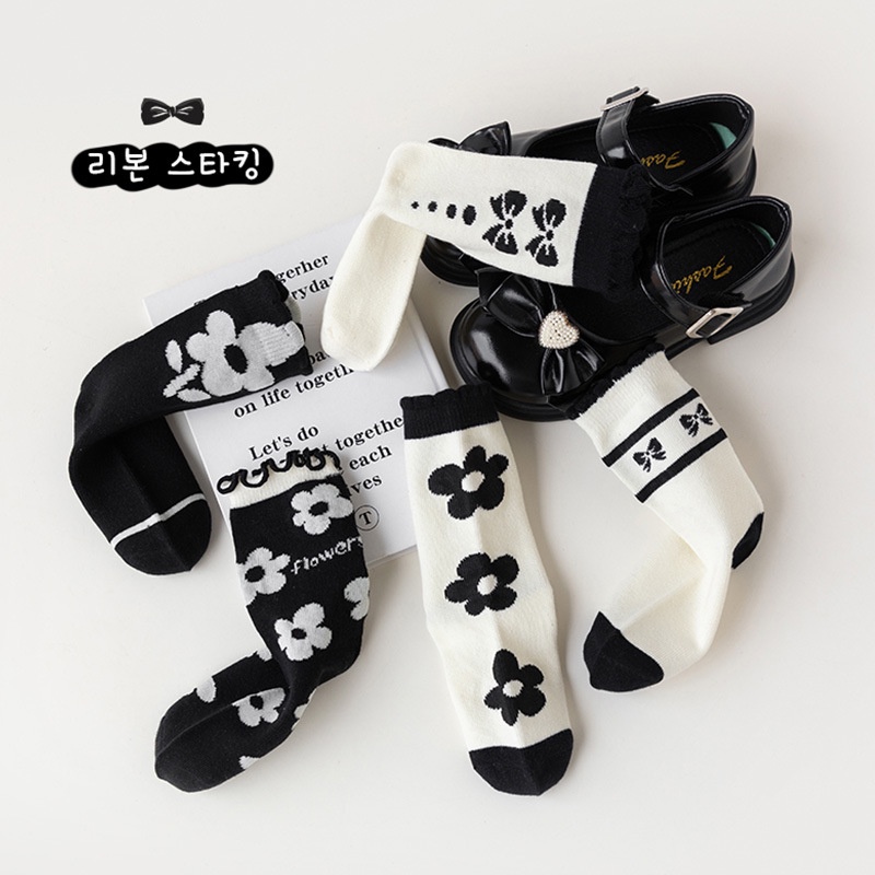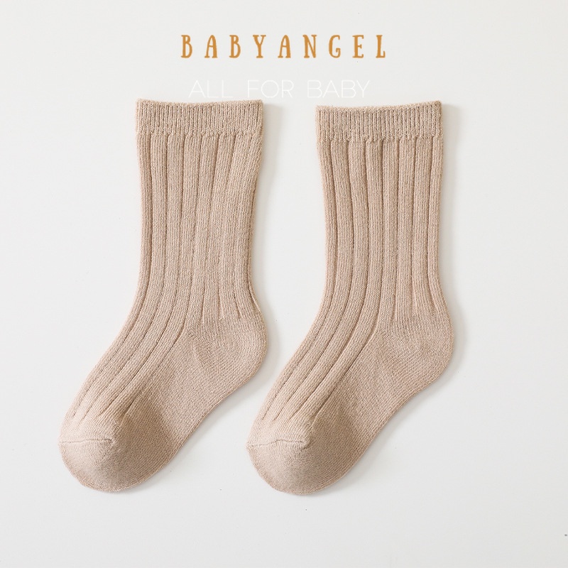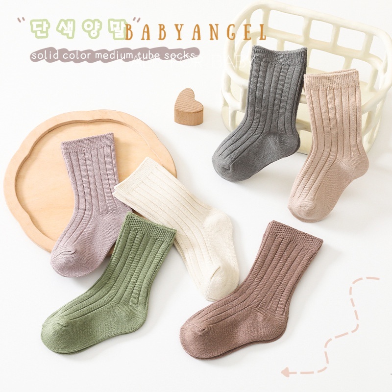 VICTOKY ถุงเท้ายาวสำหรับเด็ก ถุงเท้า ถุงเท้าเด็กผ้าตาข่าย ผ้าฝ้าย เอิร์ธโทน ขอบหยัก น่ารักมุ้งมิ้ง ดีไซน์เกาหลี
