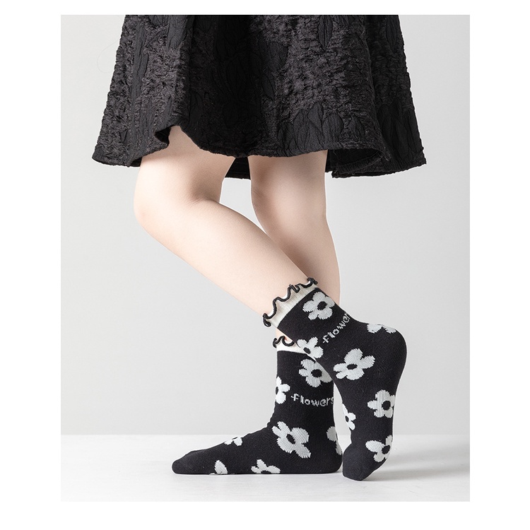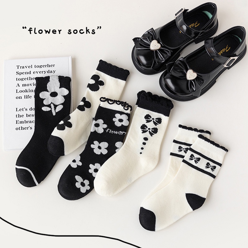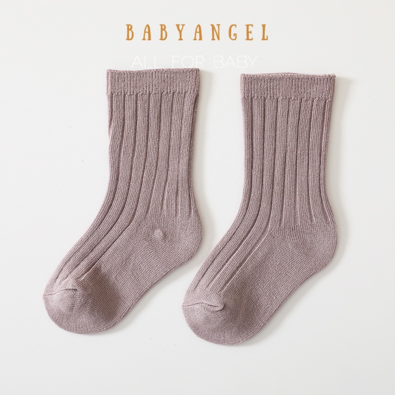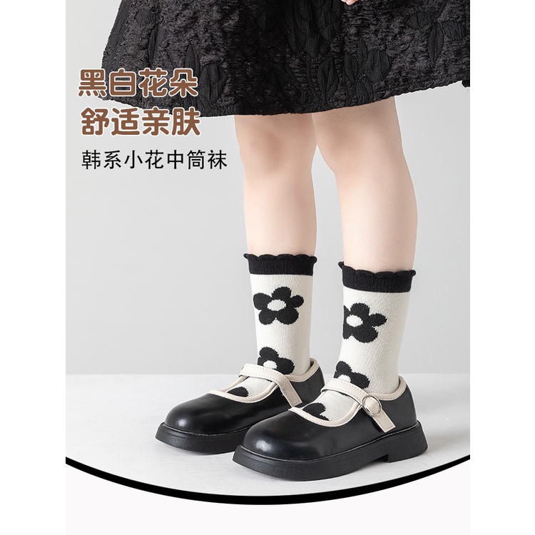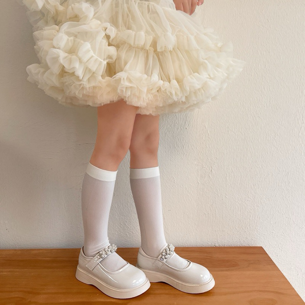 VICTOKY ถุงเท้ายาวสำหรับเด็ก ถุงเท้า ถุงเท้าเด็กผ้าตาข่าย ผ้าฝ้าย เอิร์ธโทน ขอบหยัก น่ารักมุ้งมิ้ง ดีไซน์เกาหลี