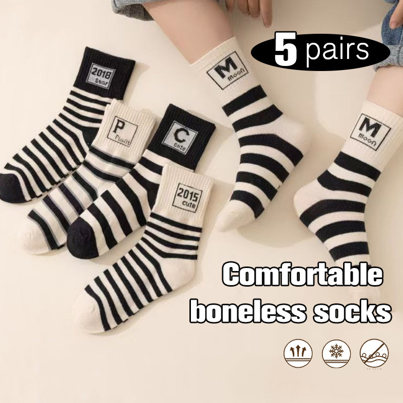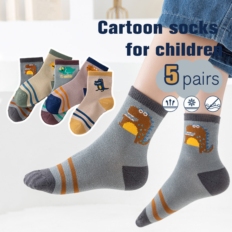 ตกลง แฟชั่น ถุงเท้าผ้าฝ้าย 5 คู่สําหรับเด็ก 1-12ปี ถุงเท้ากีฬาที่สะดวกสบายและนุ่มสําหรับเด็กทารก