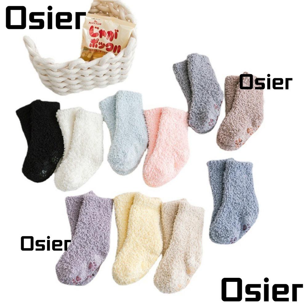 Osier1 ถุงเท้า ผ้าฟลีซ ผ้ากํามะหยี่ขนนิ่ม กันลื่น ระบายอากาศ น่ารัก สําหรับเด็กวัยหัดเดิน