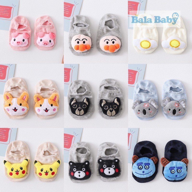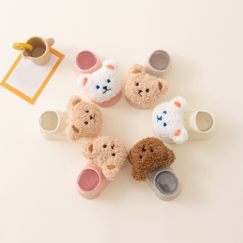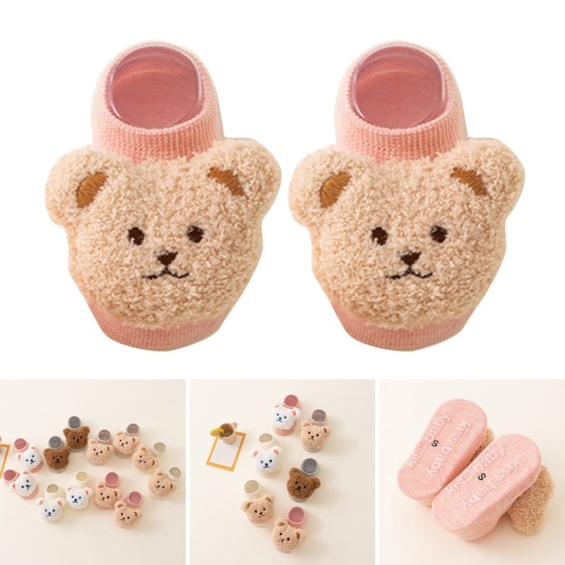 WZG07 ถุงเท้าตัวการ์ตูนสำหรับเด็กแรกเกิด มีกันลื่น มีกันลื่น หัวตุ๊กตา