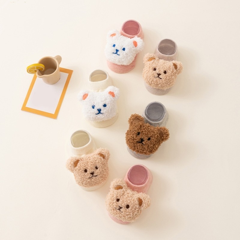 Omg* ถุงเท้าผ้าฝ้าย ระบายอากาศ แบบนิ่ม ลายหมี สําหรับเด็กทารกผู้ชาย และเด็กผู้หญิง