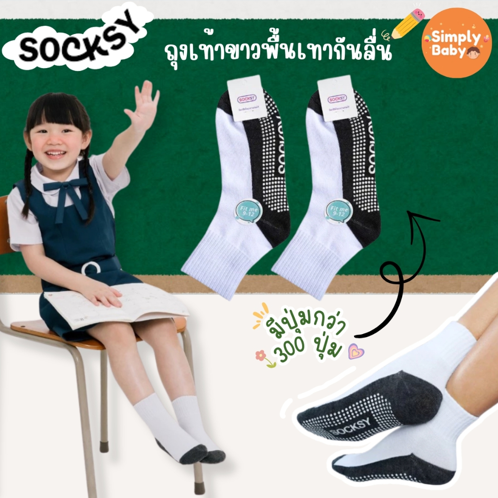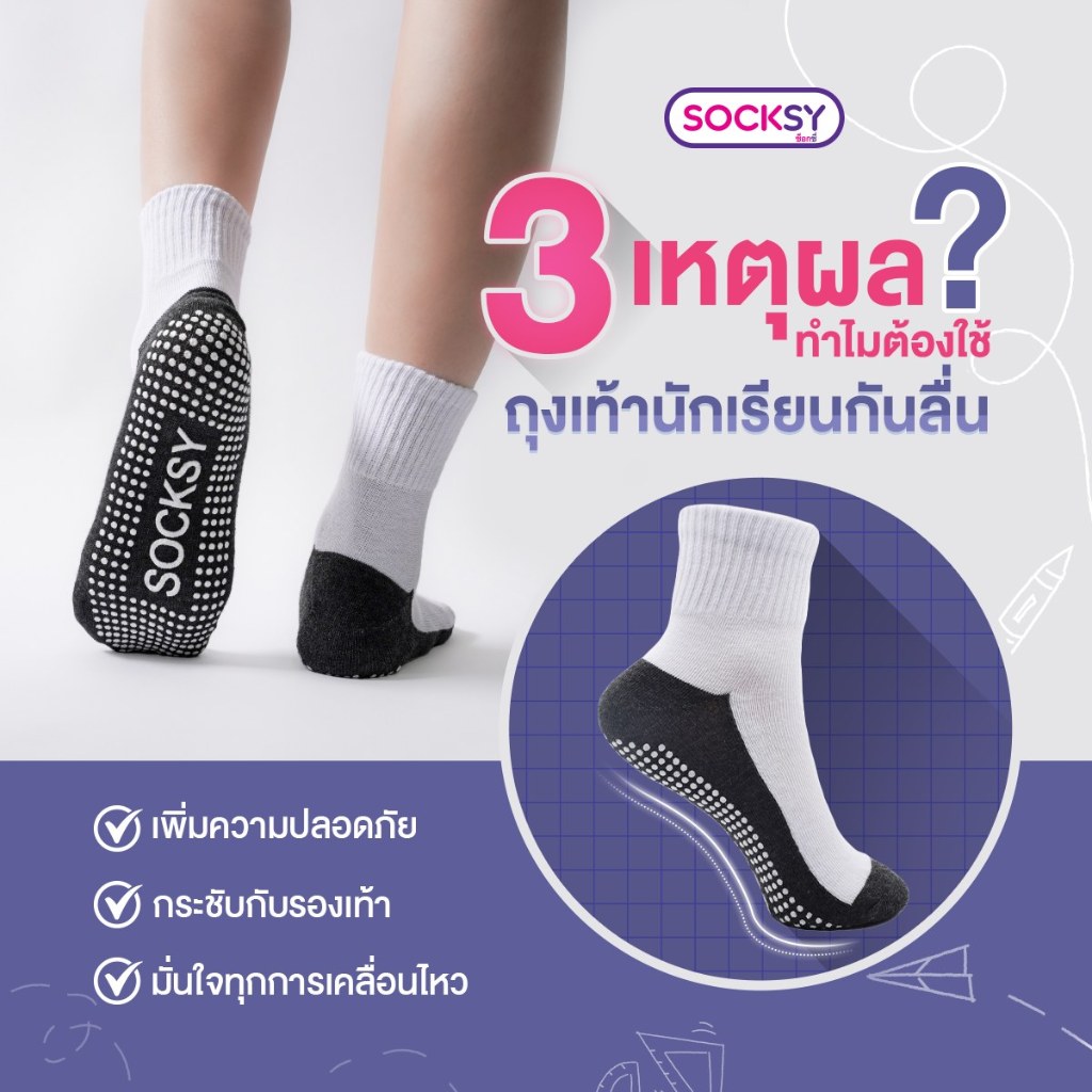 socksy ถุงเท้านักเรียน ถุงเท้าเด็ก มีปุ่มกันลื่น ป้องกันแบคทีเรีย ไม่อับชื้นง่าย