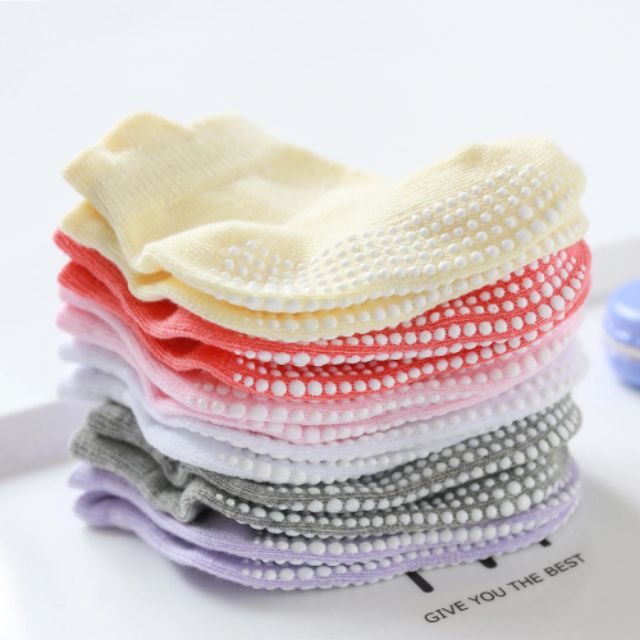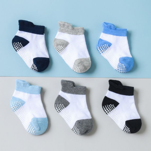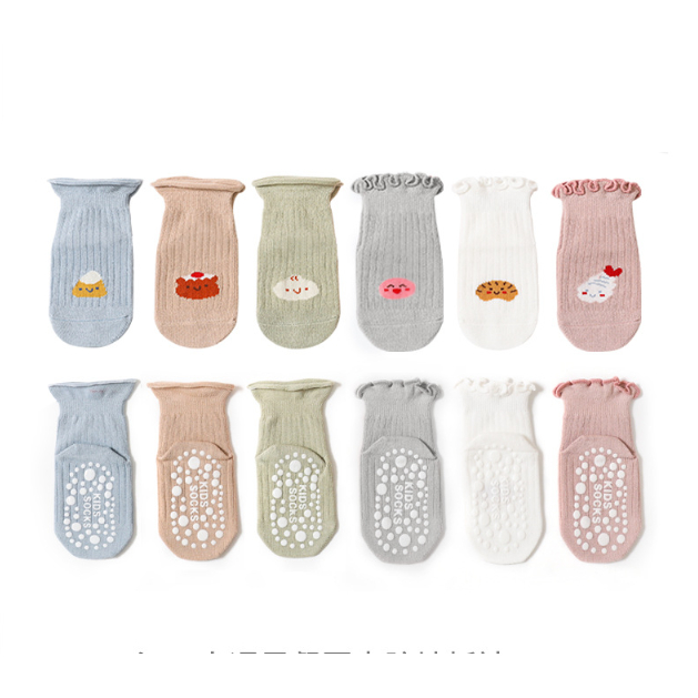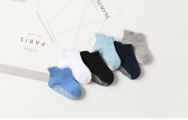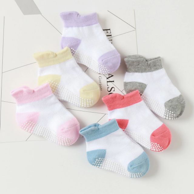 ถุงเท้าเด็ก ถุงเท้ากันลื่น สีพื้น แพค 6คู่ หนา นุ่ม