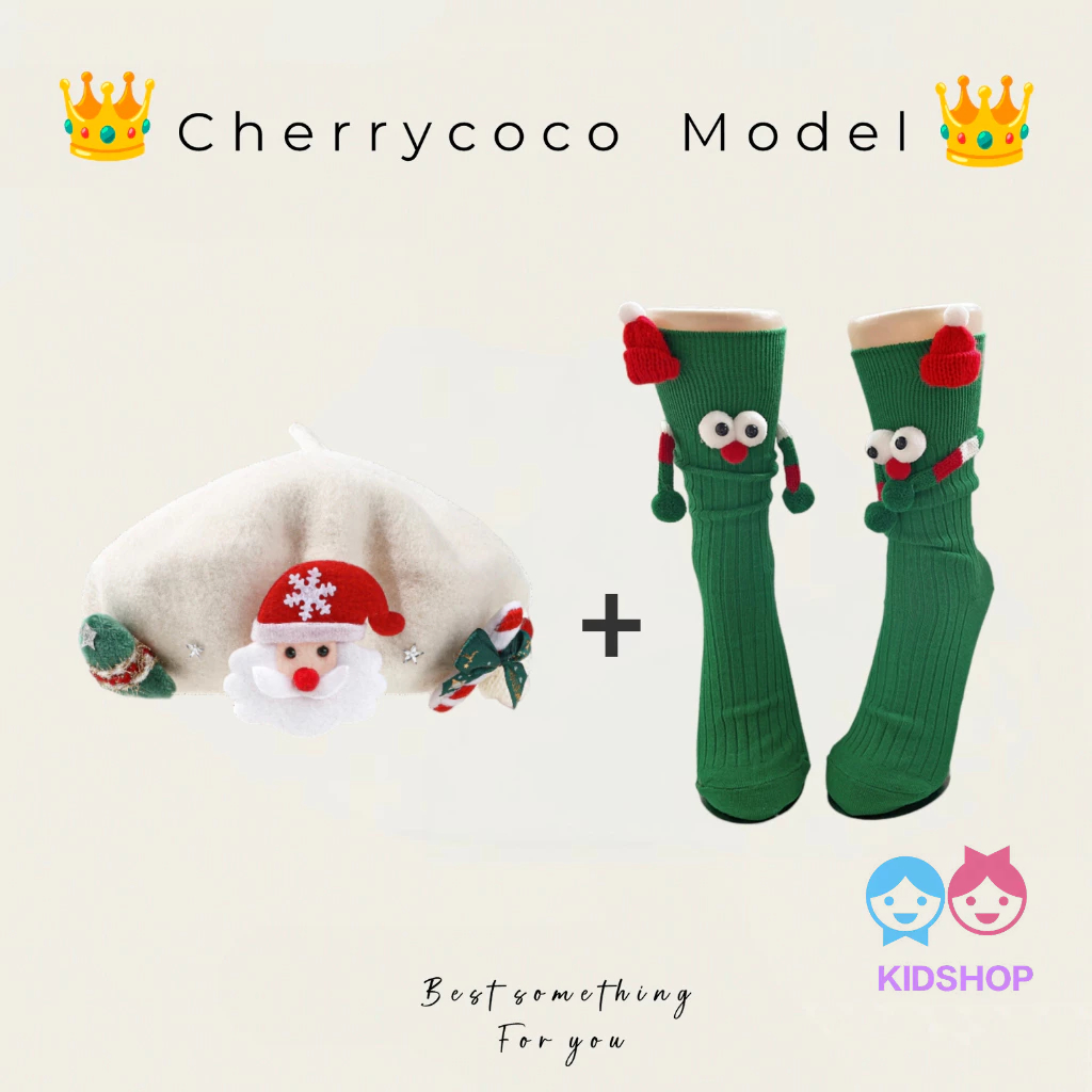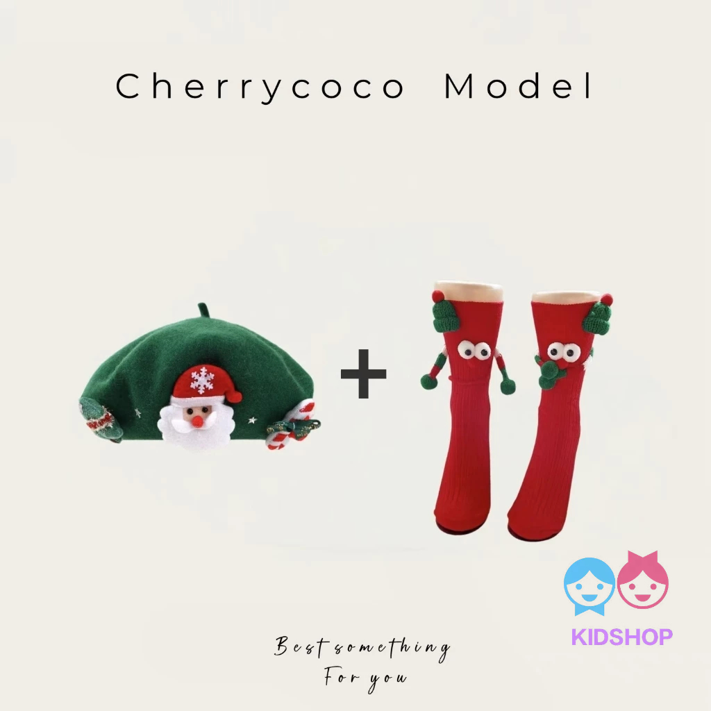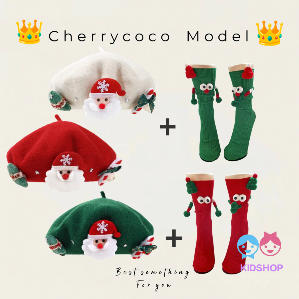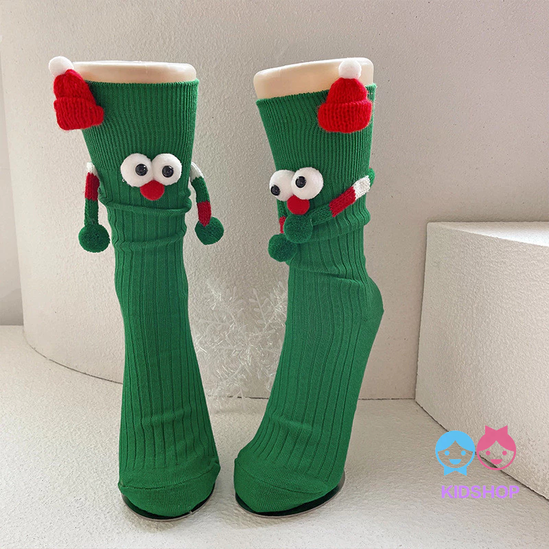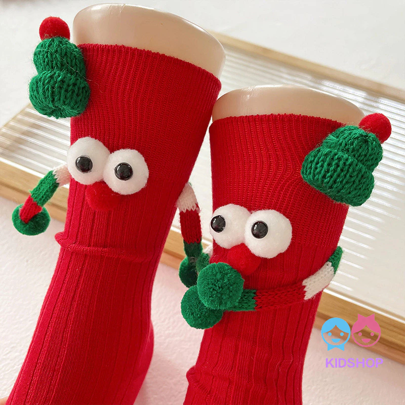 ถุงเท้าเข่าสั้นสีแดงสไตล์แซนตาคลอส สำหรับเด็กในเทศกาลคริสต์มาส