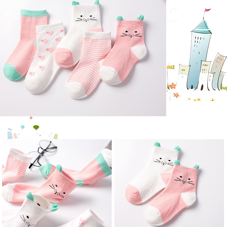 ถุงเท้าเด็ก แพ็ค 5 คู่ สำหรับน้องตั้งแต่ 0-6 ปี ผ้าคอตตอนสุดนิ่ม ลายน่ารักสุดๆ