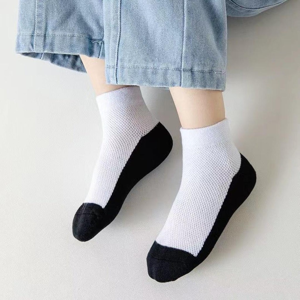 ถุงเท้าเด็ก นักเรียนสีดำ ข้อกลาง ข้อเท้าถูกระเบียบ นักเรียนเอกชน ถุงเท้าเด็กข้อกลาง สีพื้น เนื้อนุ่ม