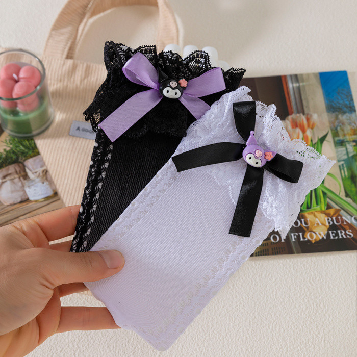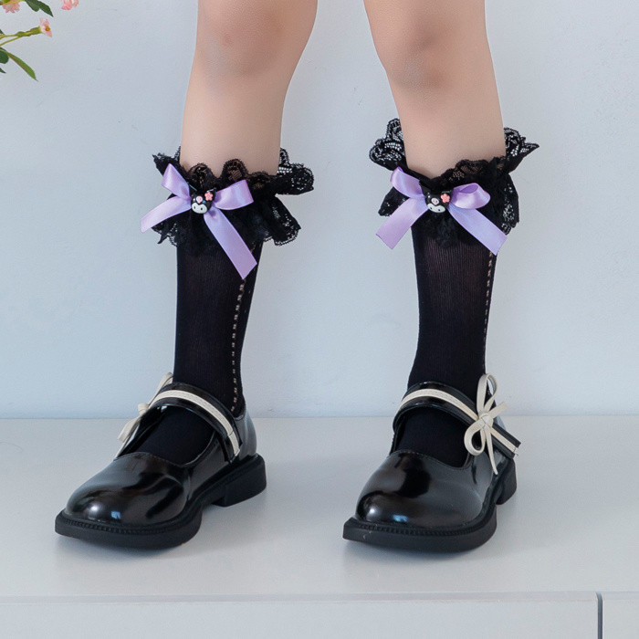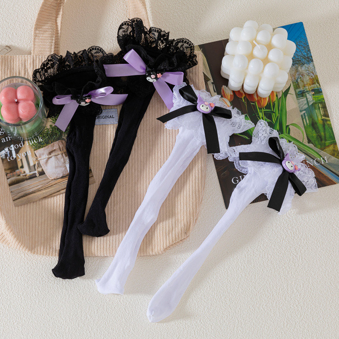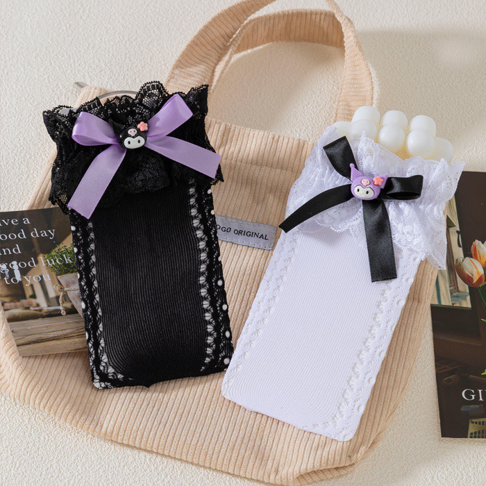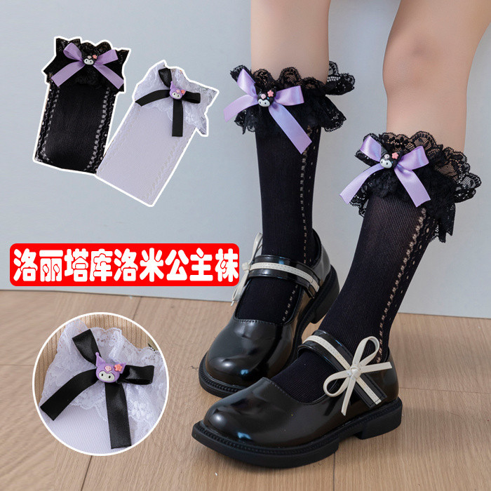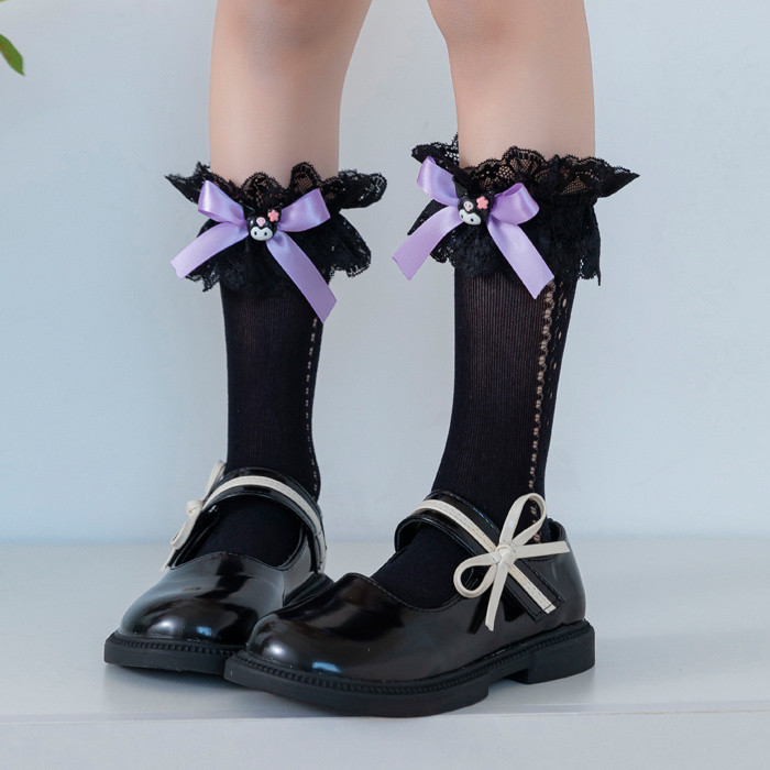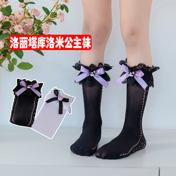 ถุงเท้าเจ้าหญิง สไตล์ลอลิตะและคุโรมิ ลายโบว์และดีไซน์น่ารัก