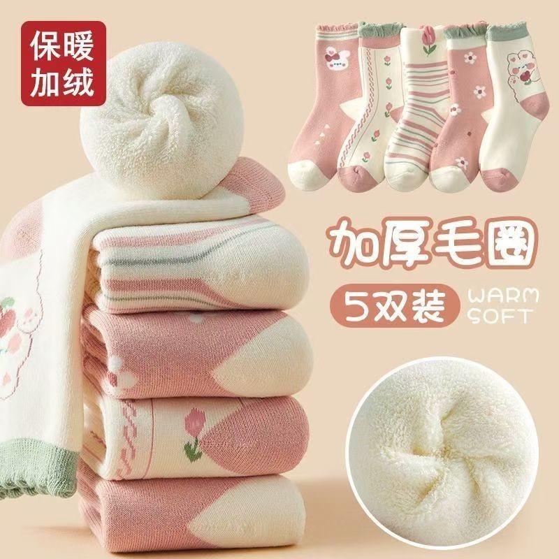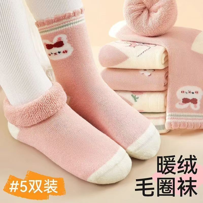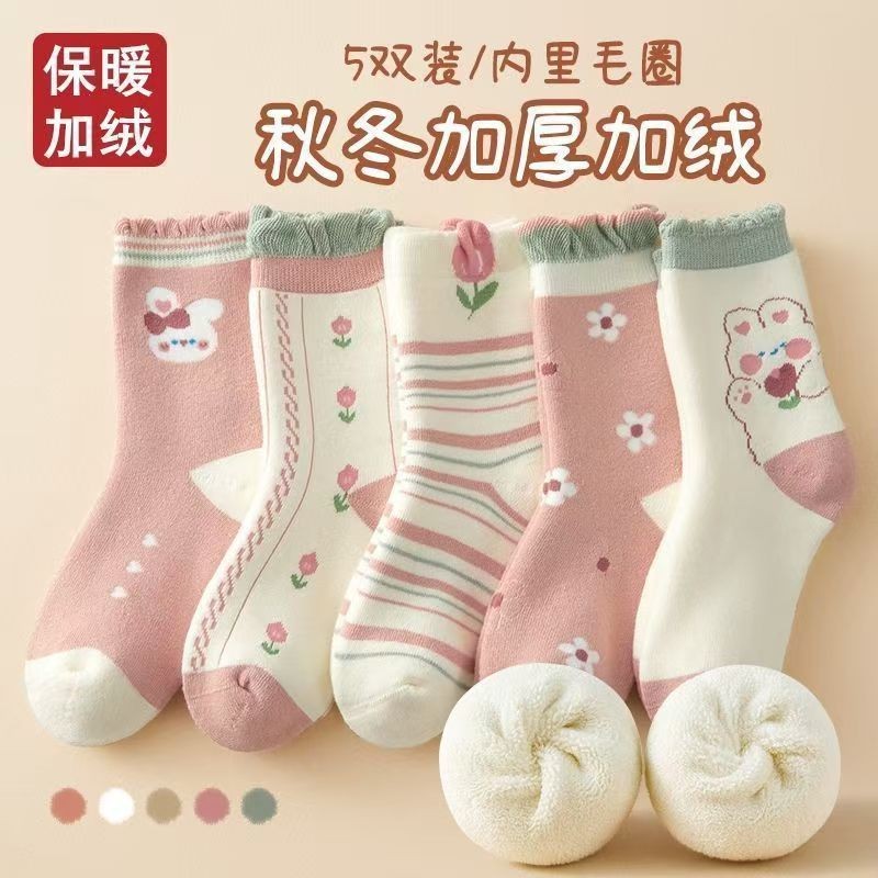 ถุงเท้าเกาหลีสำหรับเด็กและวัยรุ่น ออกแบบมาสำหรับฤดูหนาว มีซับในหนา และใช้วัสดุขนแกะและเทอร์รี่เพื่อความอบอุ่น
