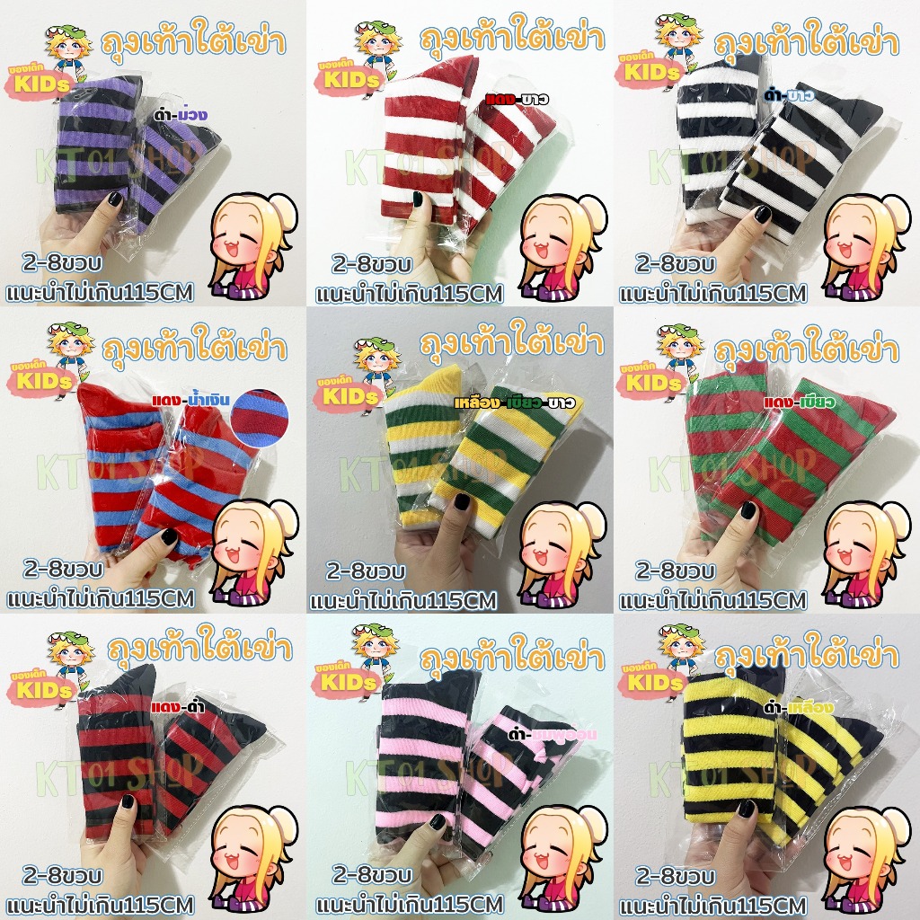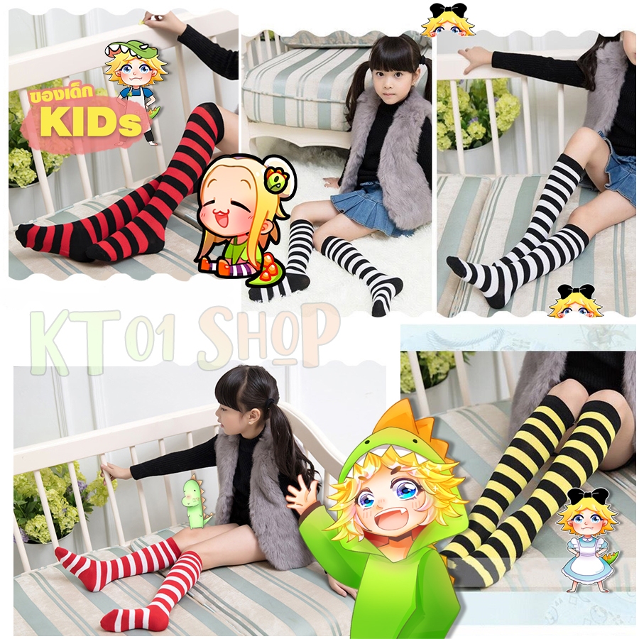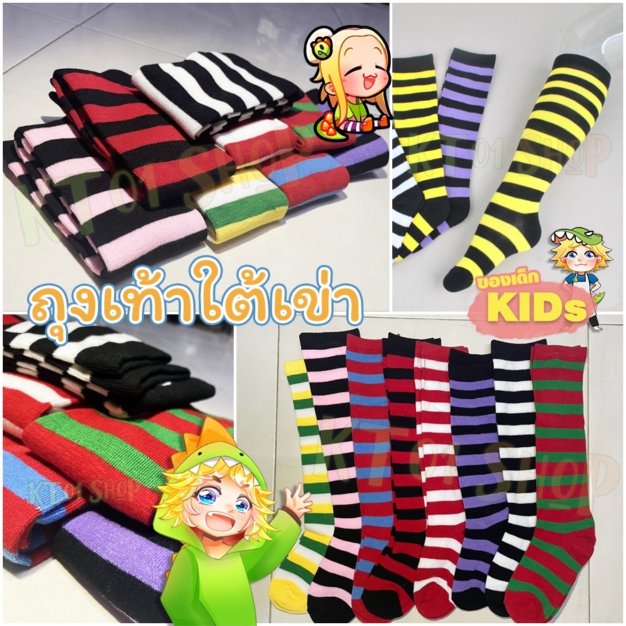 ถุงเท้าเด็ก ใต้เข่า ลายทาง แฟนซี ฮาโลวีน คริสต์มาส 12สี