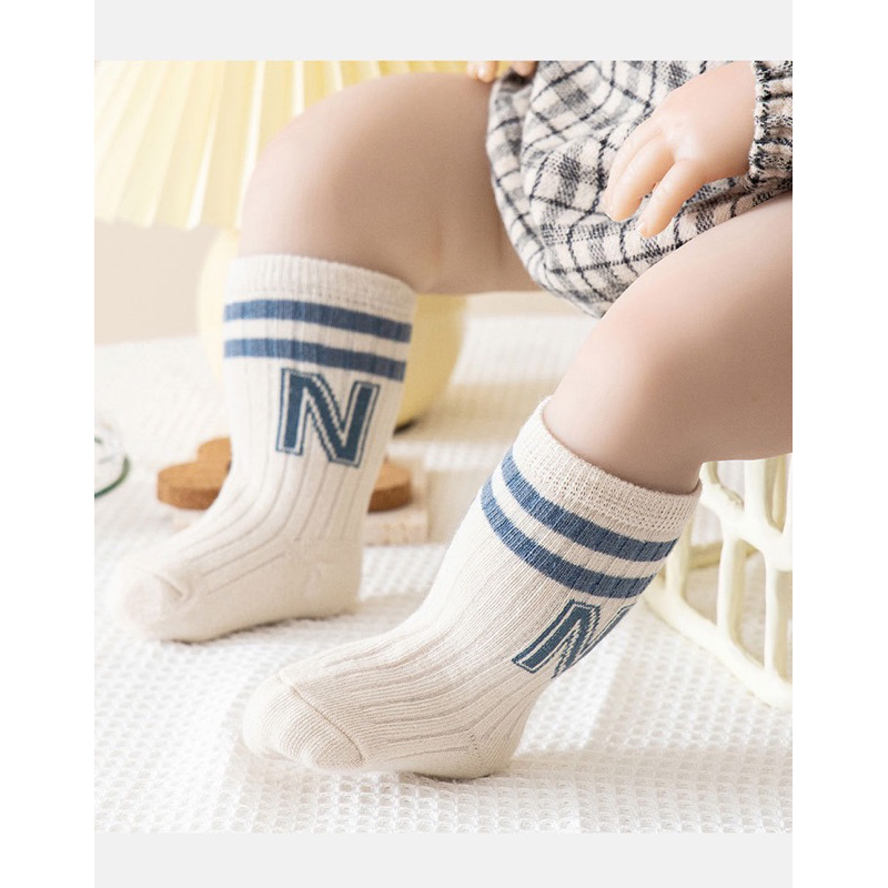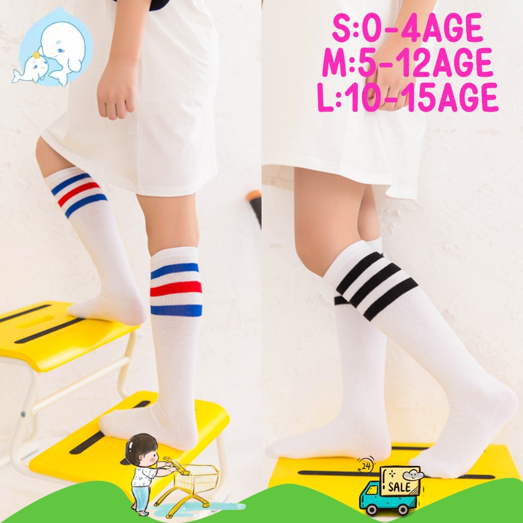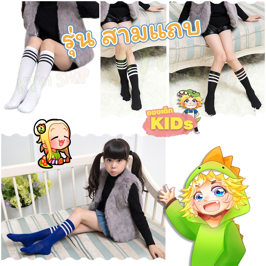 ถุงเท้าเด็ก ถุงเท้ายาว แนวสปอร์ต สายขวางสามเส้น ใส่สวยมาก#162