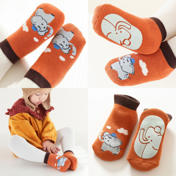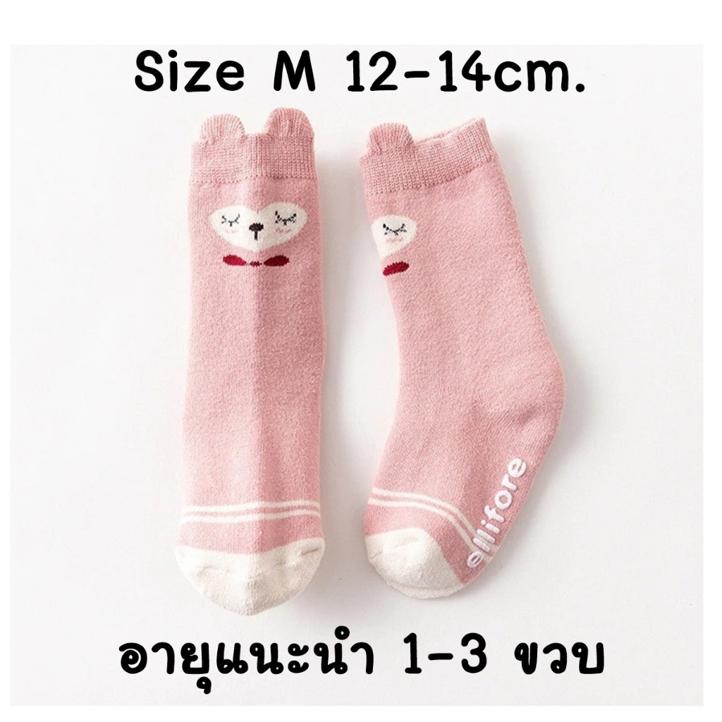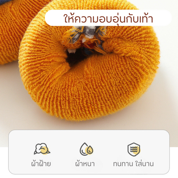 ถุงเท้าหนาสำหรับเด็ก ฤดูหนาว จากเนื้อเทอร์รี่ พร้อมฟองน้ำรองส้นและขอบปิดปลายเท้า