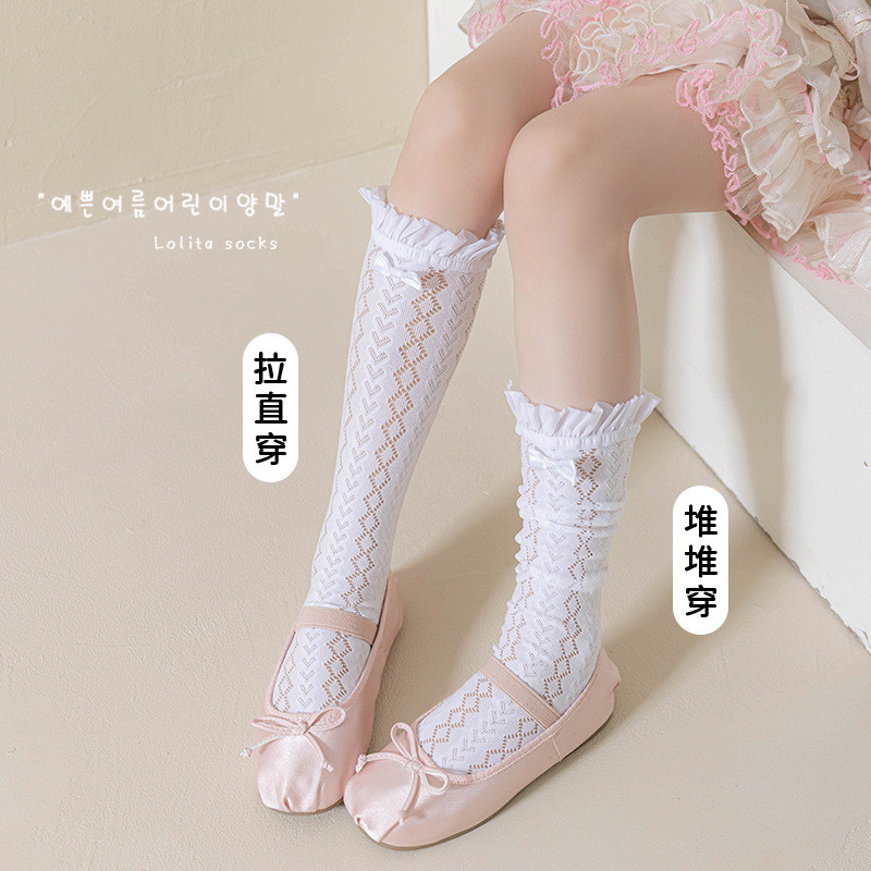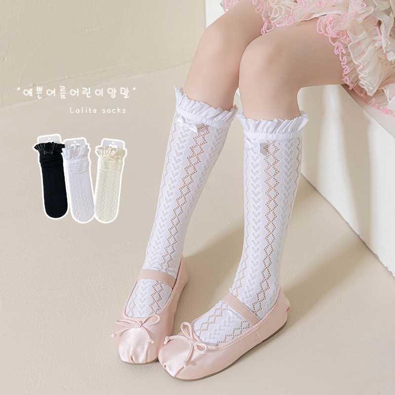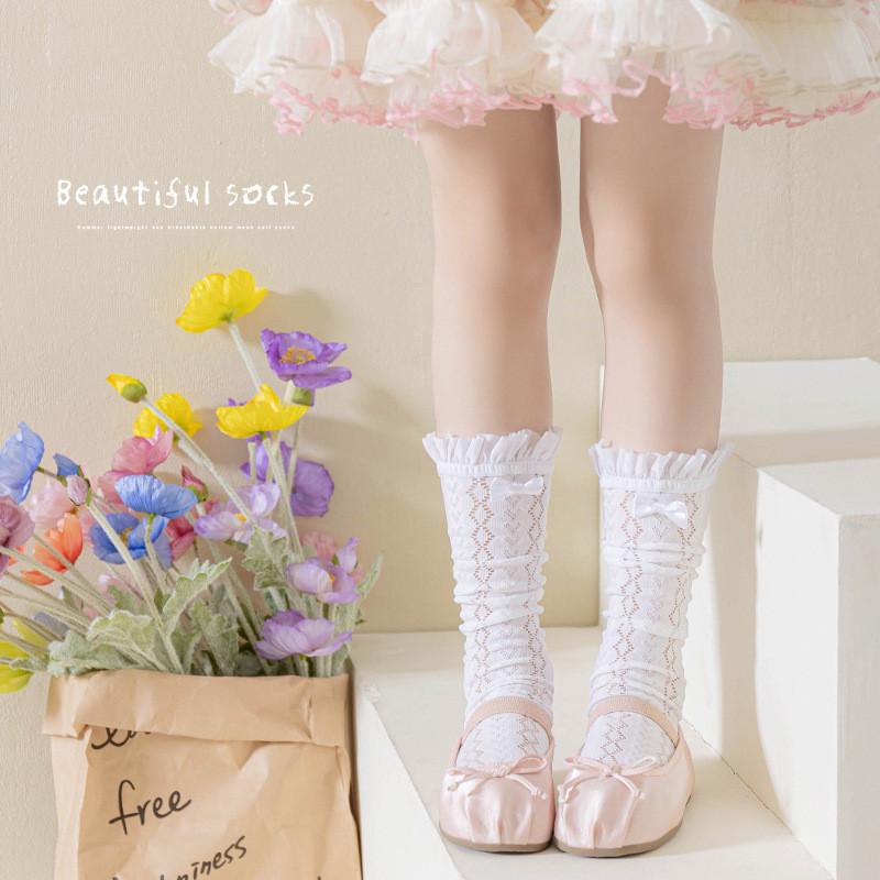เด็กถุงเท้ากลางลูกวัวฤดูร้อนบางลูกไม้ลูกไม้เจ้าหญิงถุงเท้าเกาหลีถุงเท้ากลางลูกวัวหญิง
