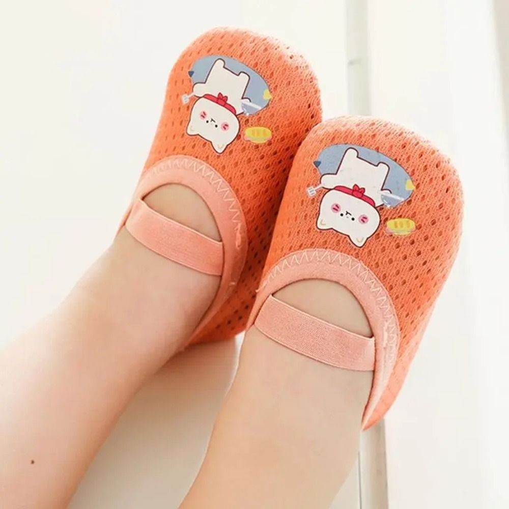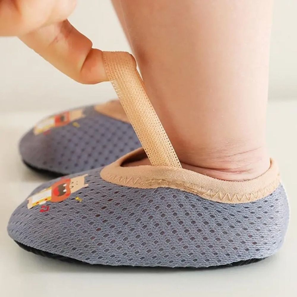 รองเท้าพื้นสำหรับเด็ก อายุน้อย ออกแบบมาเพื่อกันลื่นและมีตาข่ายระบายอากาศ เหมาะสำหรับสวมใส่ในบ้านและการเล่นกลางแจ้ง