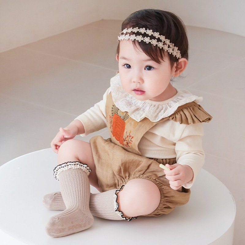 ฤดูใบไม้ร่วงฤดูหนาวสาวลูกไม้ลูกไม้หลุมแถบถุงเท้าเด็ก