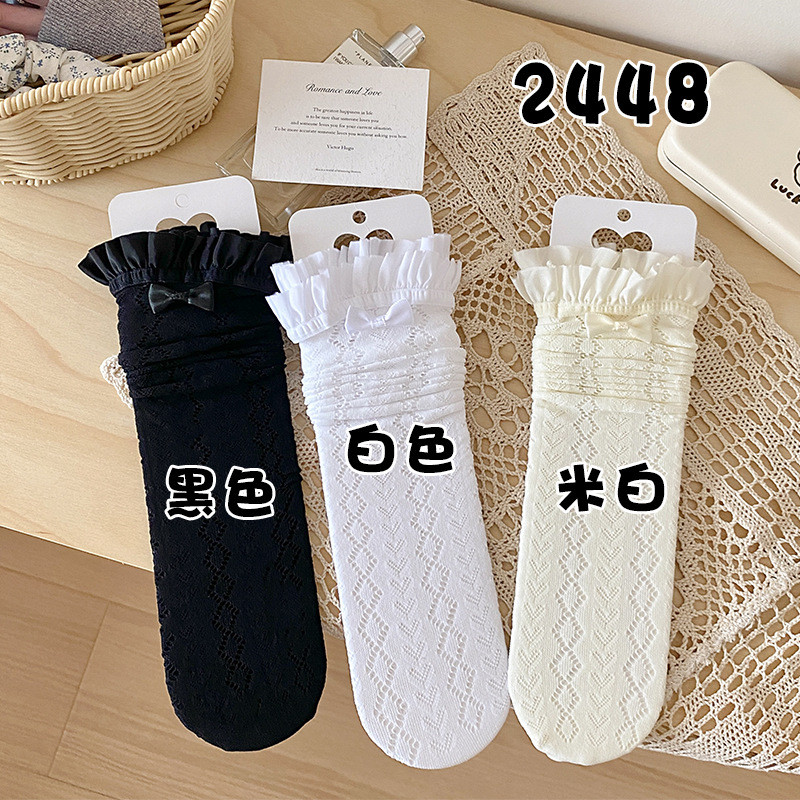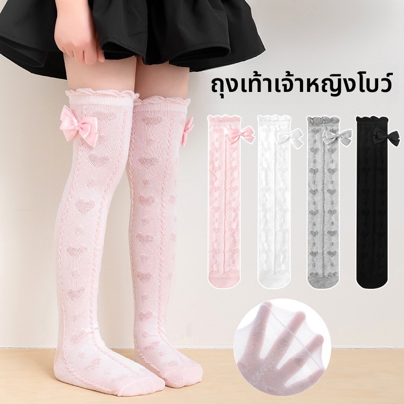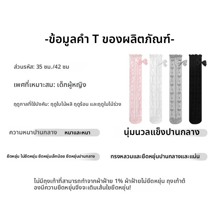 สาวถุงเท้าเหนือเข่าฤดูใบไม้ผลิฤดูร้อนบางหวีผ้าฝ้ายระบายอากาศป้องกันยุงรักโบว์หลอดยาว 3-