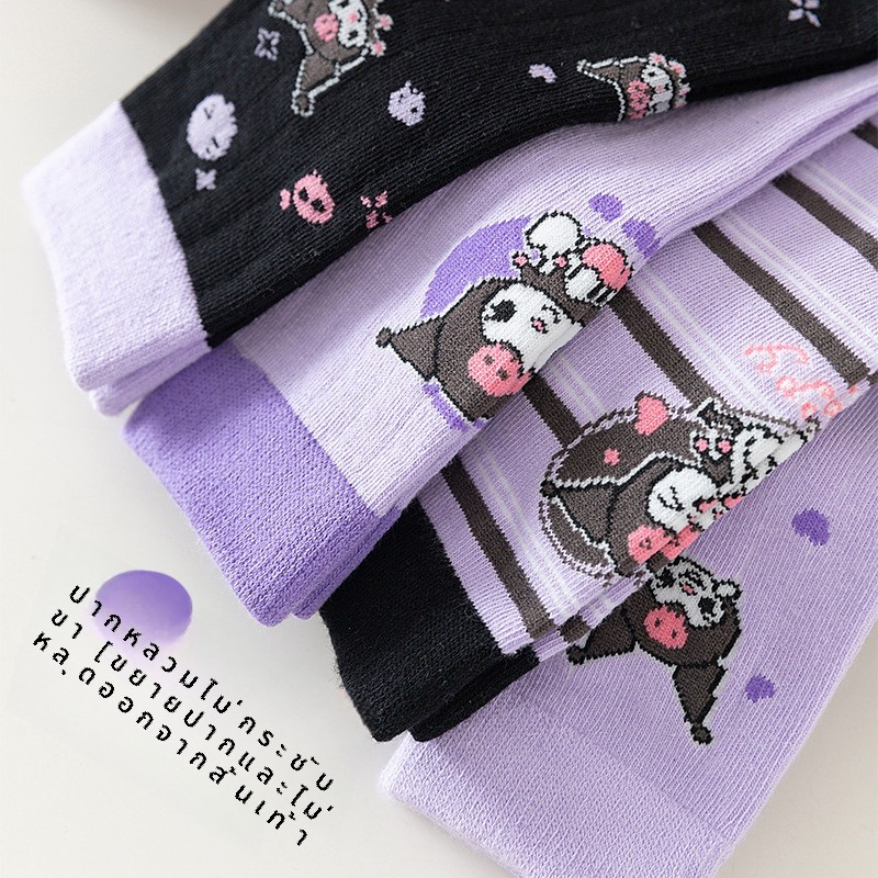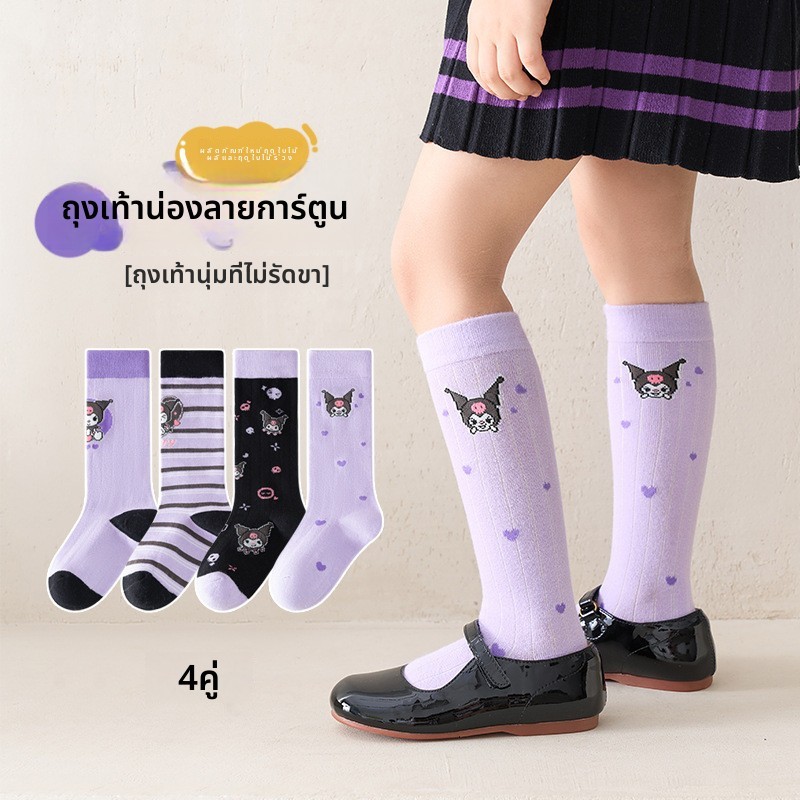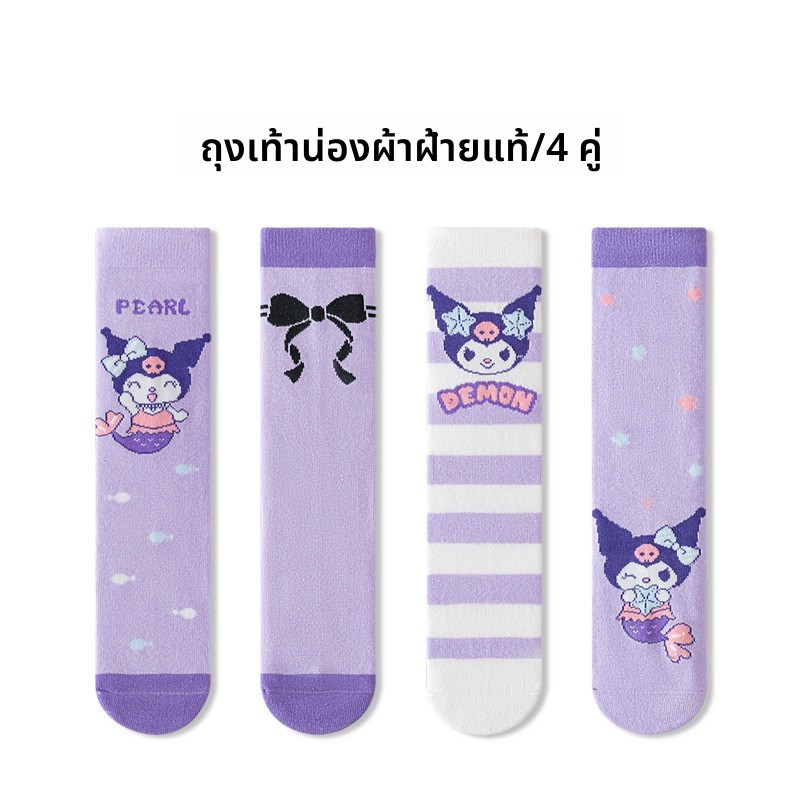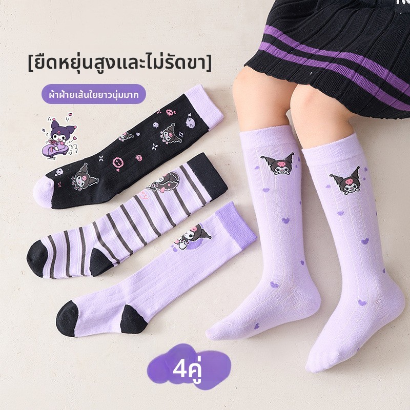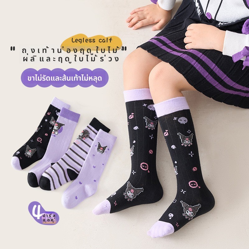พร้อมสต็อก จัดส่งทันที!น่ารัก สนุก คุโรมิ เวอร์ชั่นเกาหลีหลอดยาวเข่าถุงเท้าผ้าฝ้ายกลางเด็กใหญ่สไตล์การ์ตูนหวานต้องมี [4 คู่]