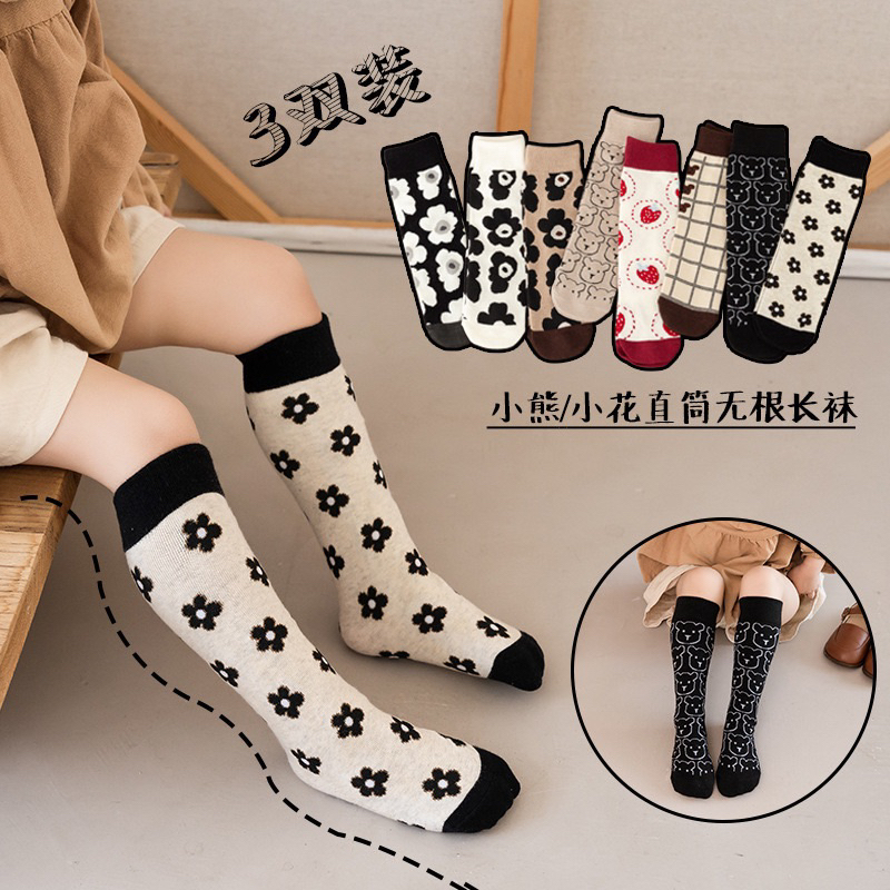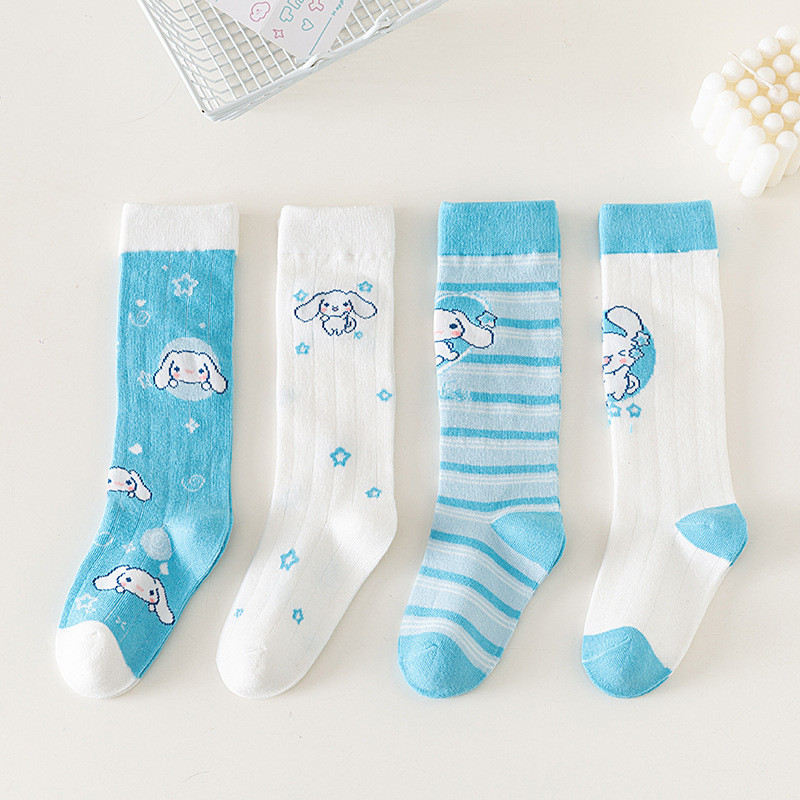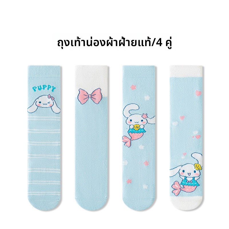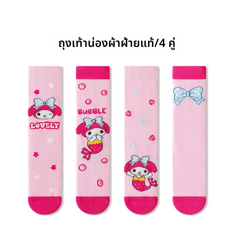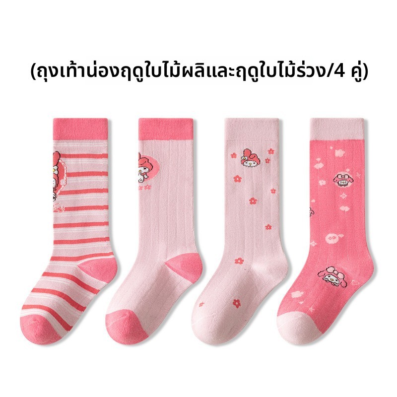 พร้อมสต็อก จัดส่งทันที!น่ารัก สนุก คุโรมิ เวอร์ชั่นเกาหลีหลอดยาวเข่าถุงเท้าผ้าฝ้ายกลางเด็กใหญ่สไตล์การ์ตูนหวานต้องมี [4 คู่]