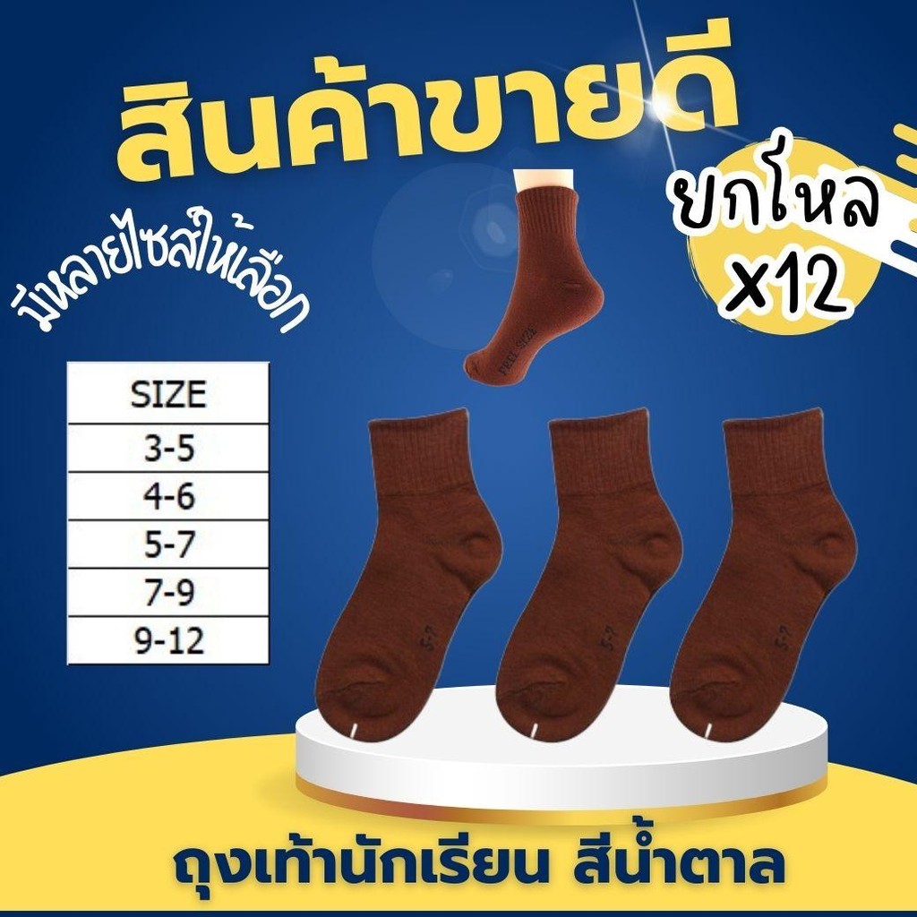 ยกโหล 12 คู่ ถุงเท้านักเรียน ถุงเท้านักเรียนสีน้ำตาล ถุงเท้าพื้นน้ำตาล เนื้อผ้าหนานุ่ม ดี ใส่สบาย Man ผู้ชาย