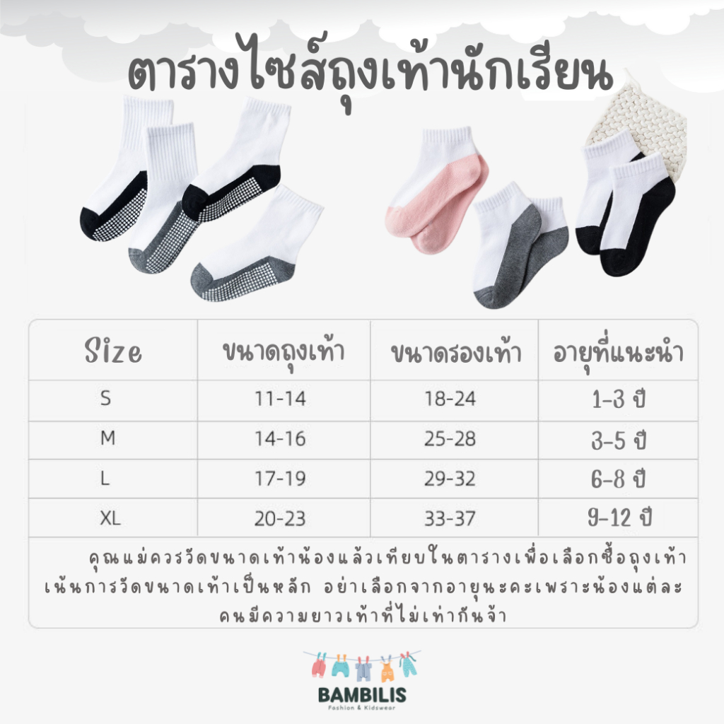 ✨พร้อมส่ง✨ ถุงเท้านักเรียนกันลื่น 1 ชุดมี 5 คู่ กันลื่นเต็มฝ่าเท้า คุณภาพพรีเมี่ยม D04 : Bambilis