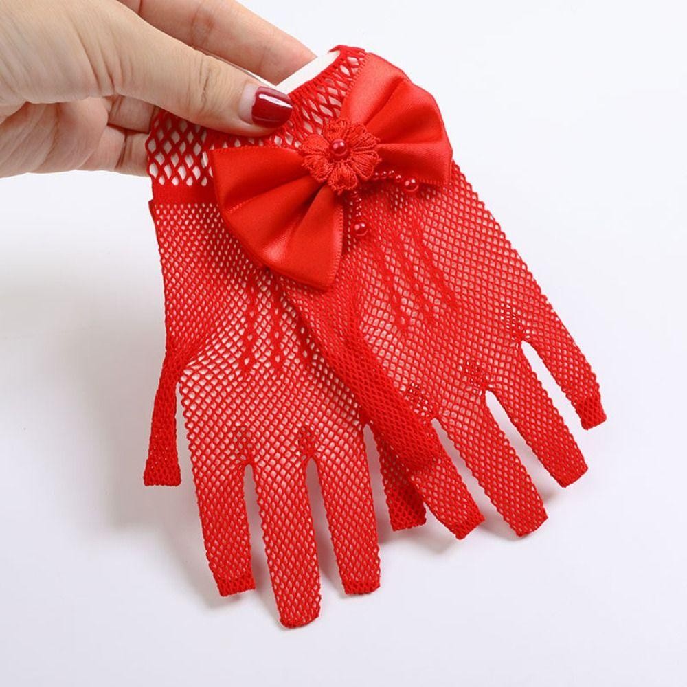 ถุงมือแต่งงานเด็ก ชิวจู, ถุงมือตาข่ายลูกไม้สั้นโบว์โบว์, ถุงมือชุดมารยาทบางสร้างสรรค์ถุงมือปาร์ตี้วันเกิดเจ้าหญิงวันหยุด