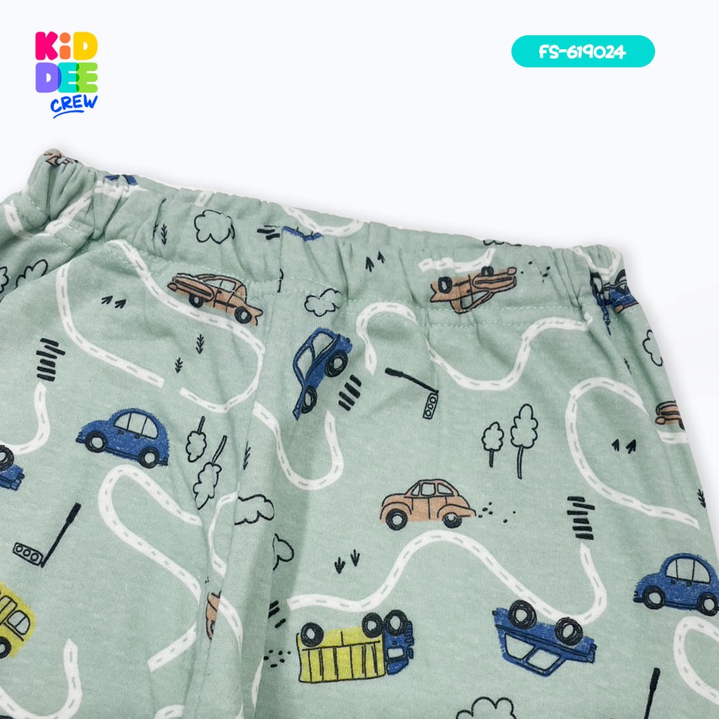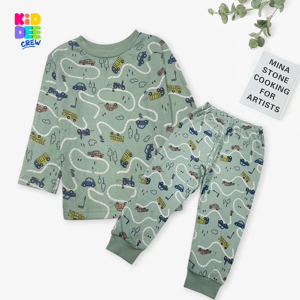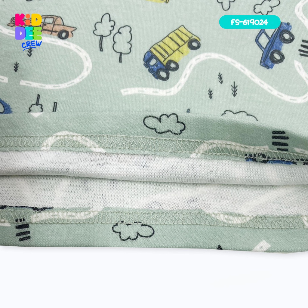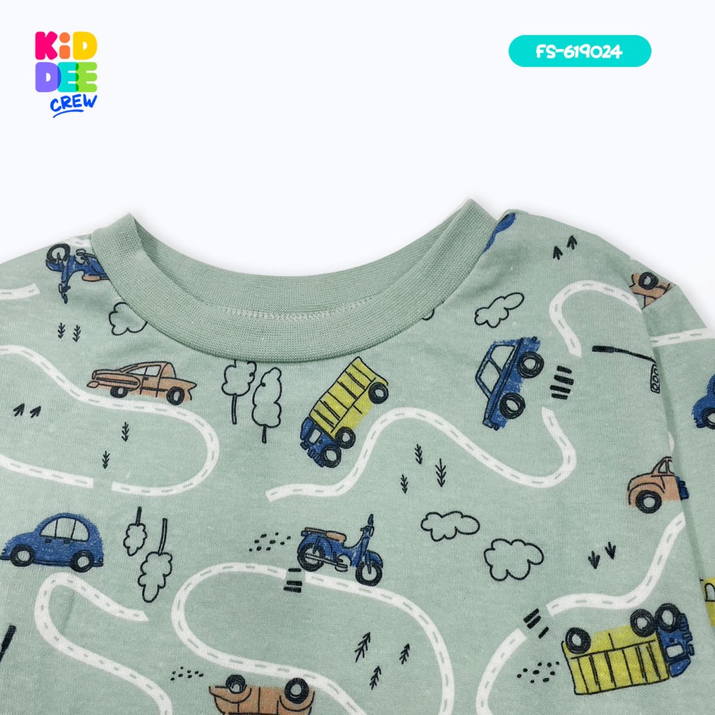 KiddeeCrew ชุดนอนเด็กสีเขียวอ่อนลายรถ เหมาะสำหรับอายุ 1-12 ปี