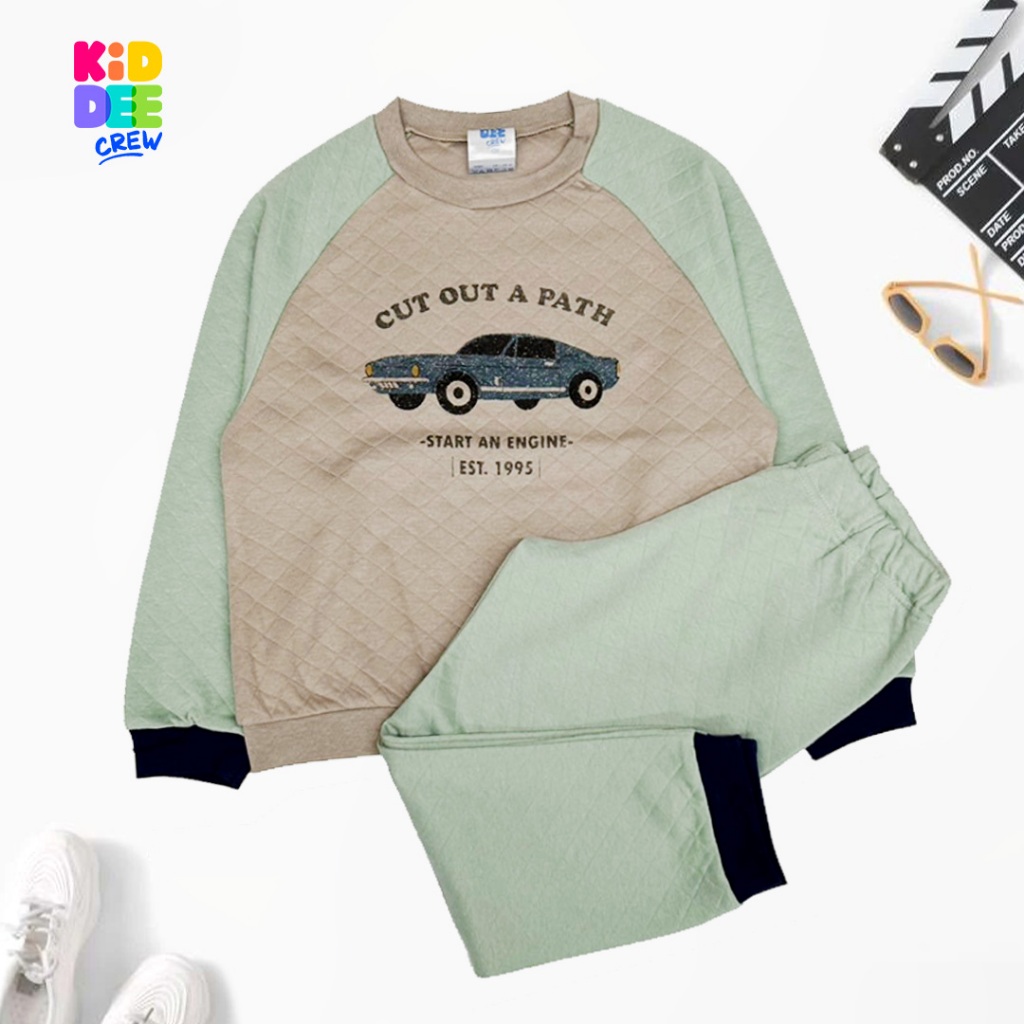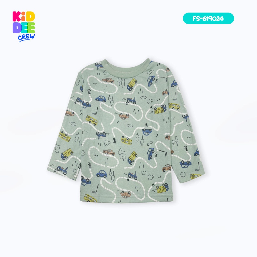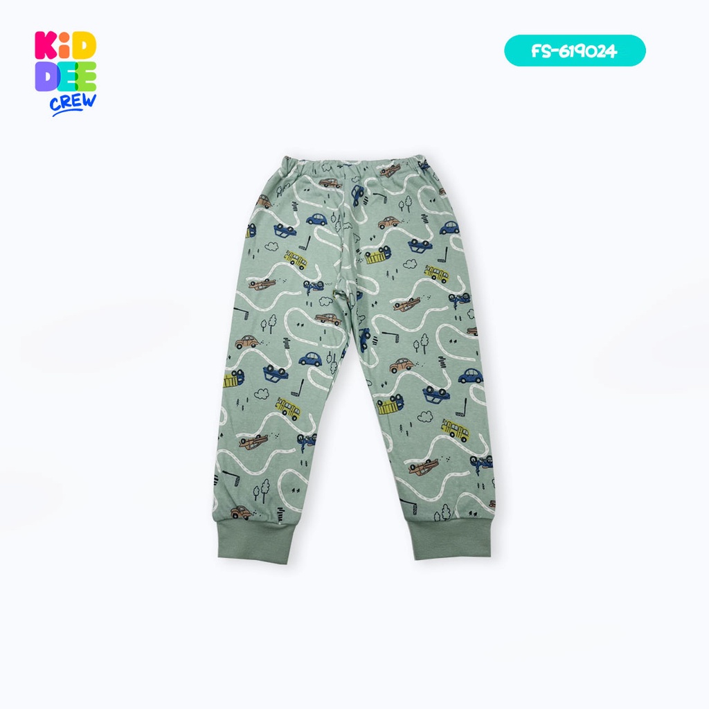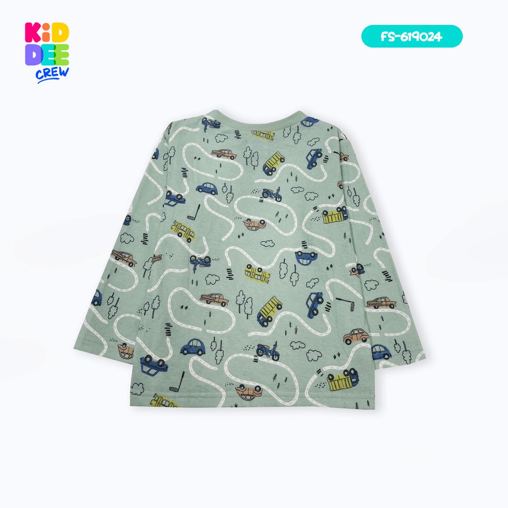 KiddeeCrew ชุดนอนเด็กสีเขียวอ่อนลายรถ เหมาะสำหรับอายุ 1-12 ปี