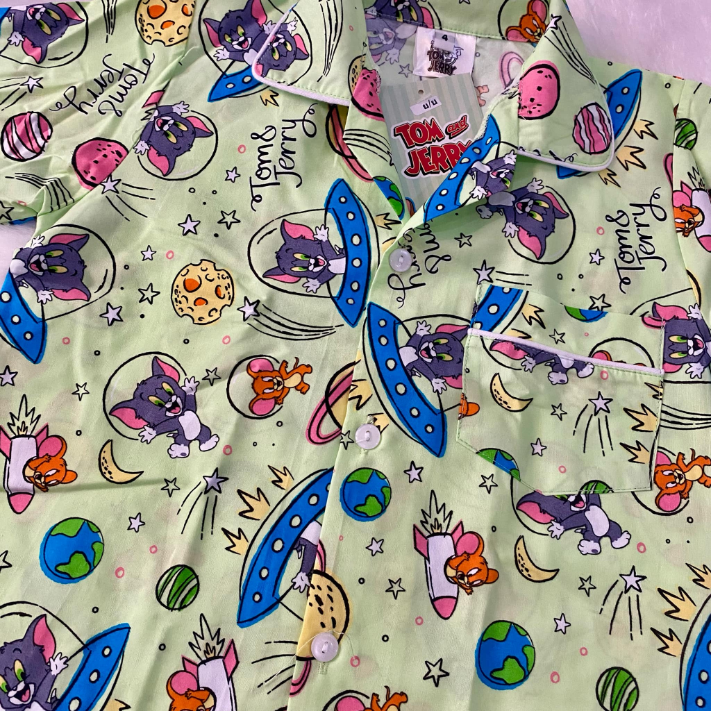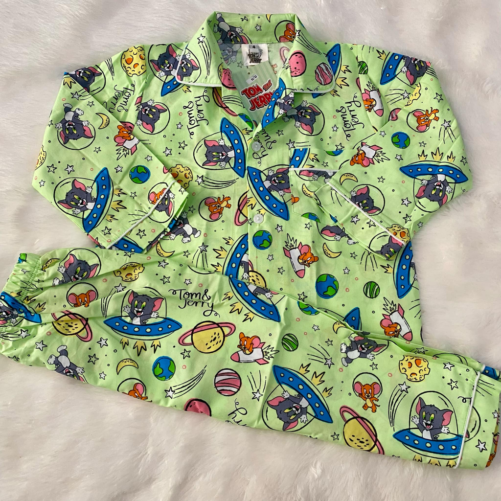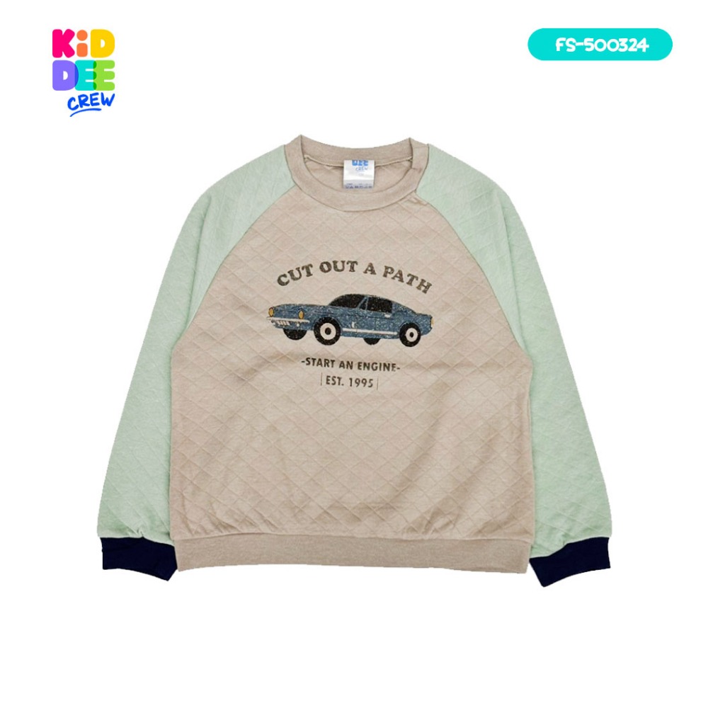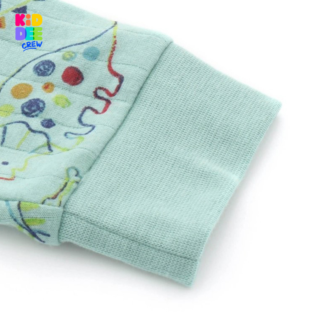KiddeeCrew ชุดนอนเด็กสีเขียวอ่อนลายรถ เหมาะสำหรับอายุ 1-12 ปี