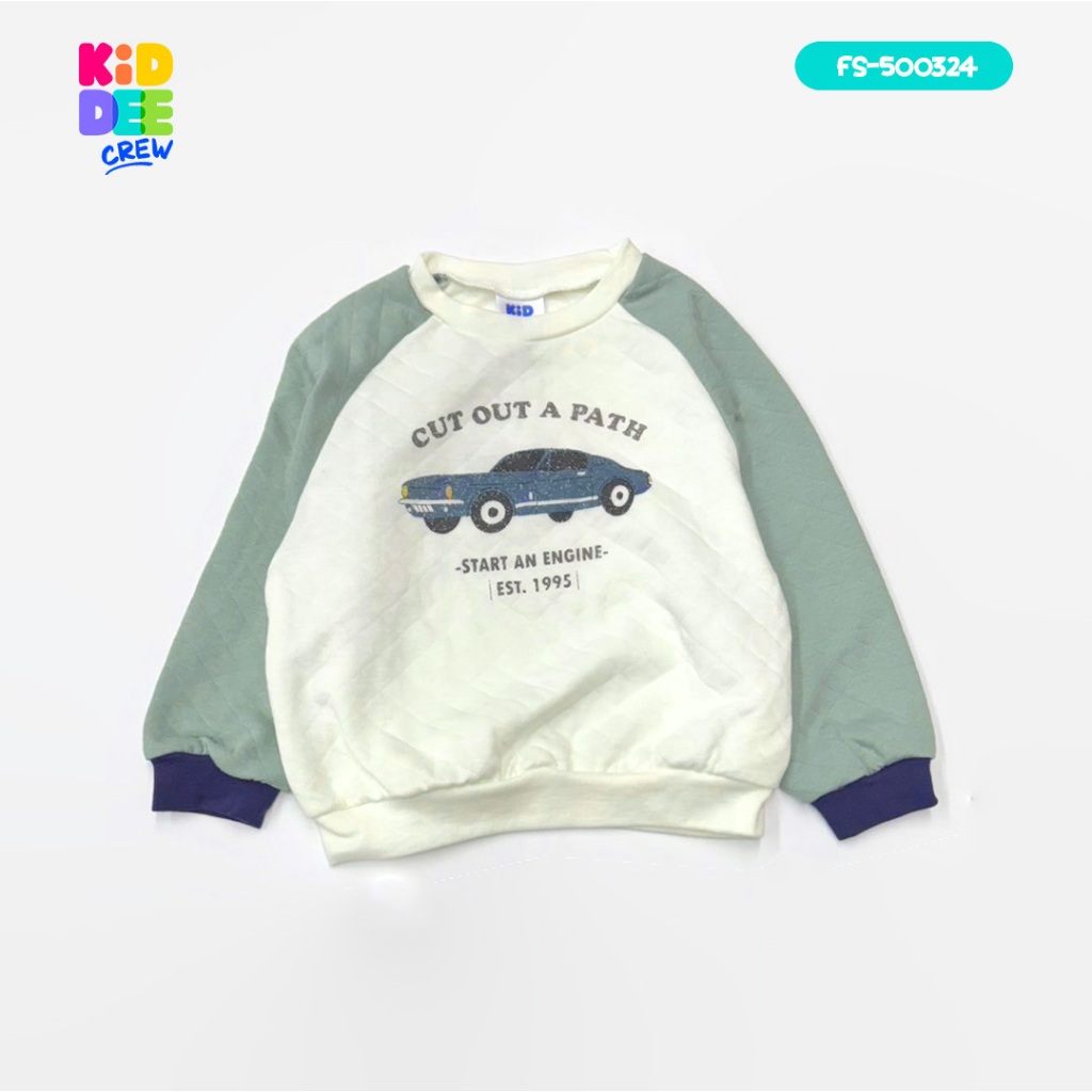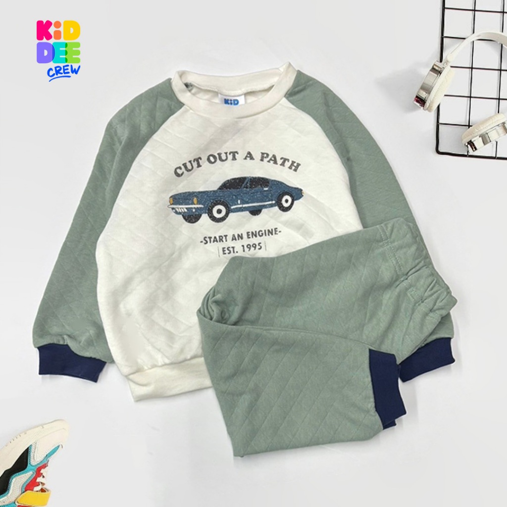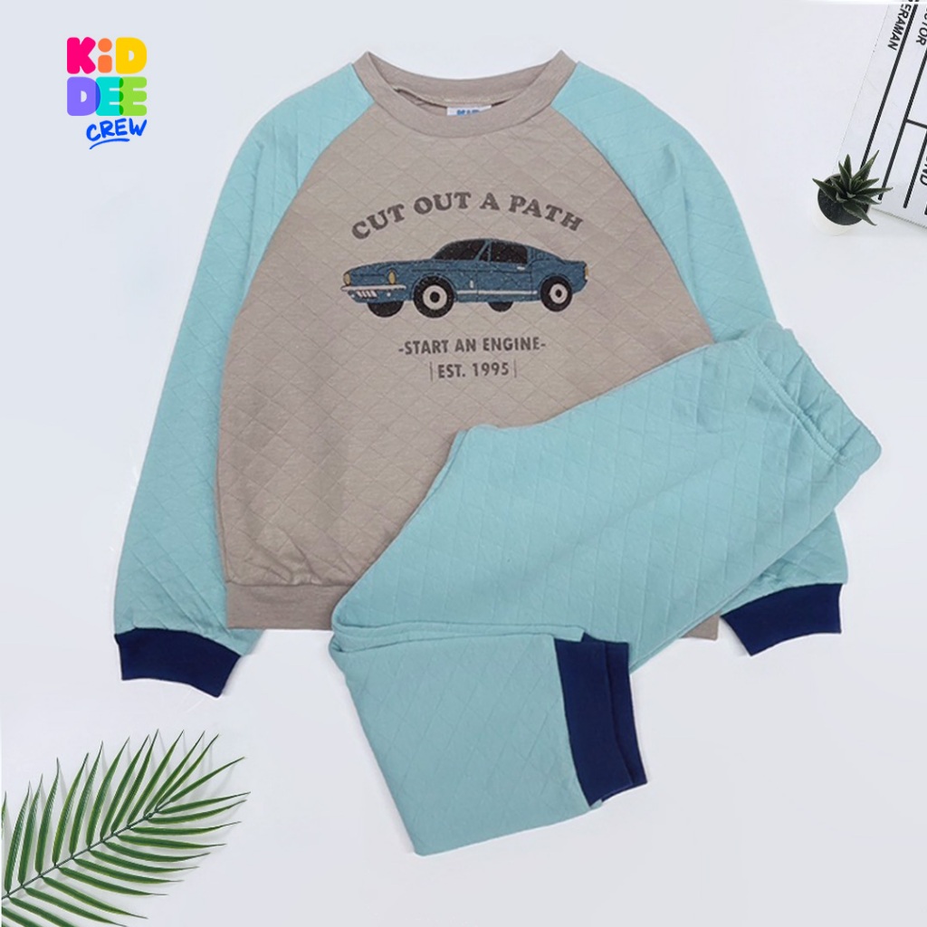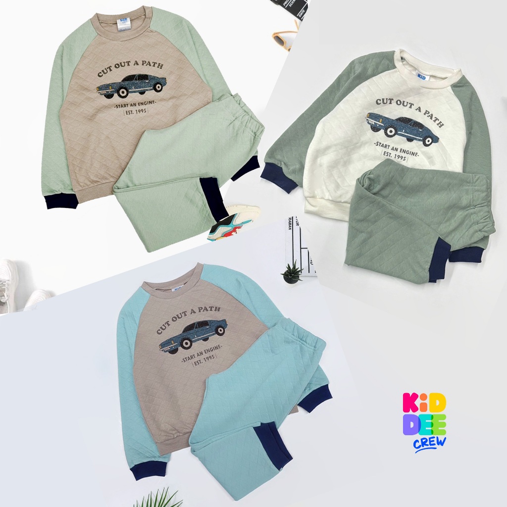 KiddeeCrew ชุดนอนเด็ก ขาวพิมพ์รถ ผ้าแซนวิช เหมาะสำหรับอายุ 1-14 ปี