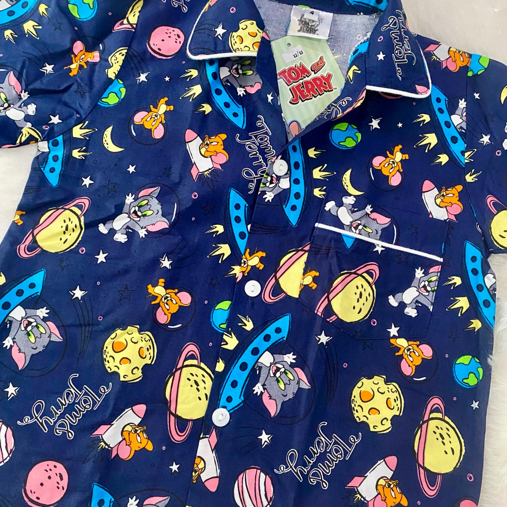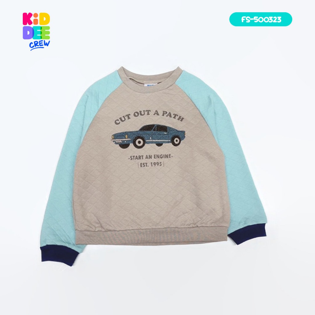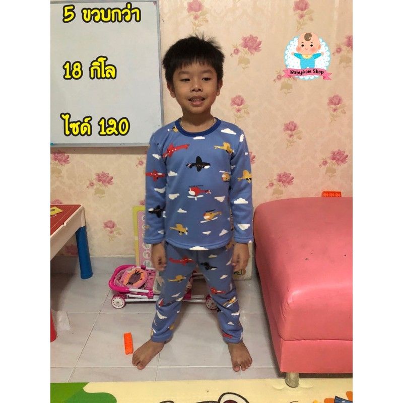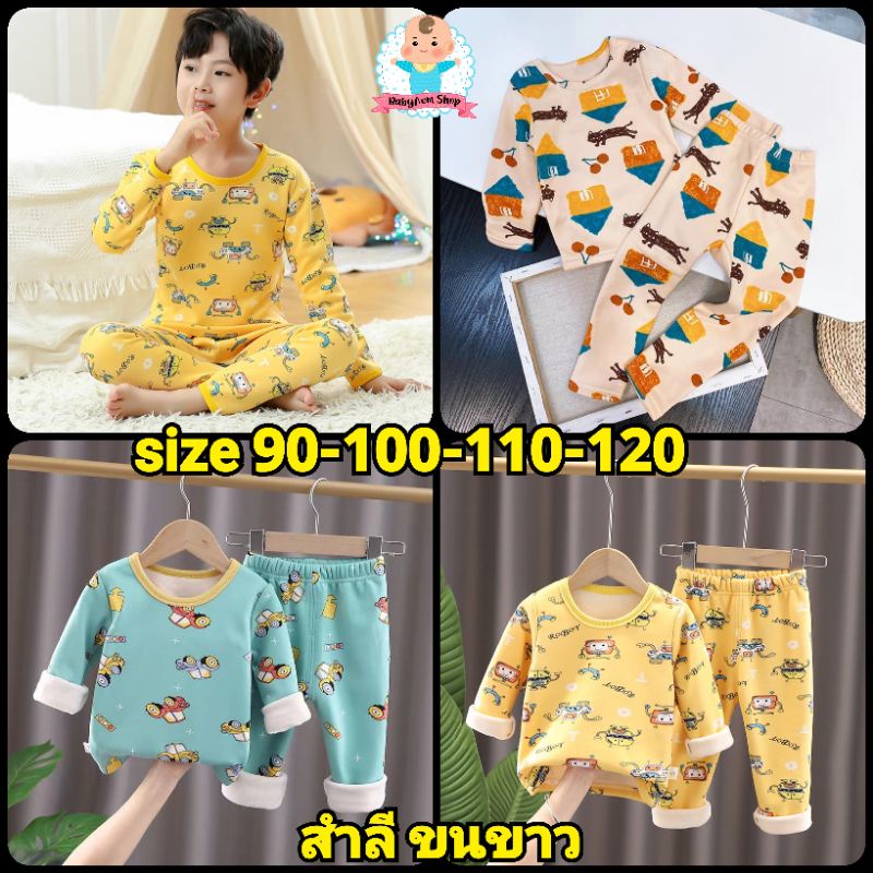 KiddeeCrew ชุดนอนเด็ก ขาวพิมพ์รถ ผ้าแซนวิช เหมาะสำหรับอายุ 1-14 ปี