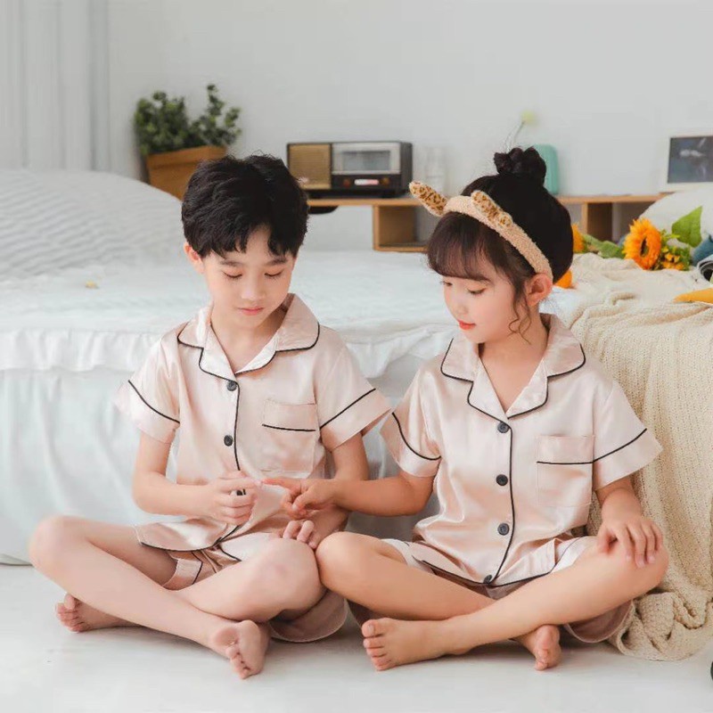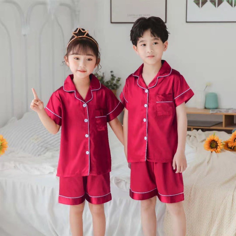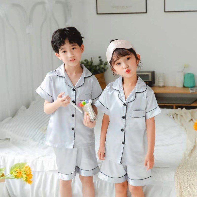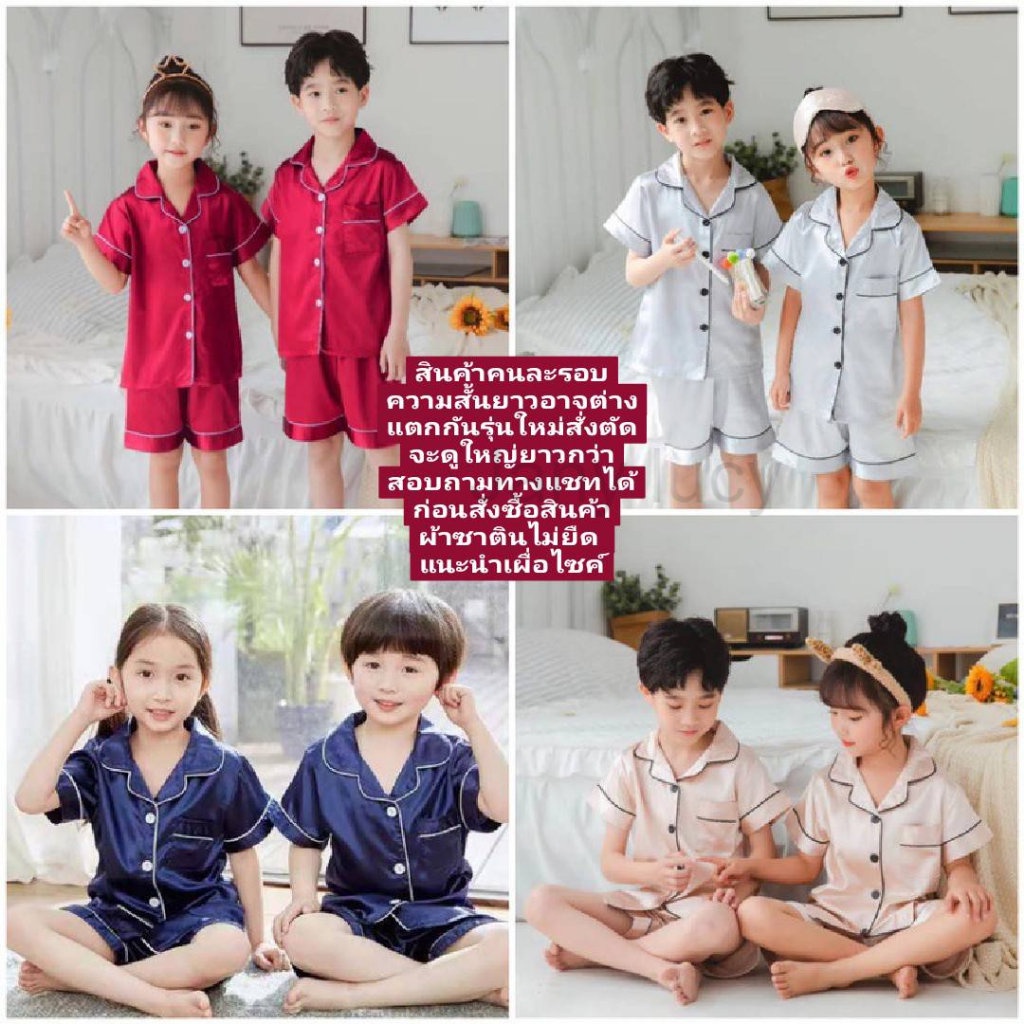 TT2222 SBT เซทชุดนอนเด็ก ชุดนอนผ้าซาตินชุดนอนแบบสั้นและแบบยาว สีพื้น ขนาด100-160พร้อมส่งไม่ต้องรอพรีให้นาน