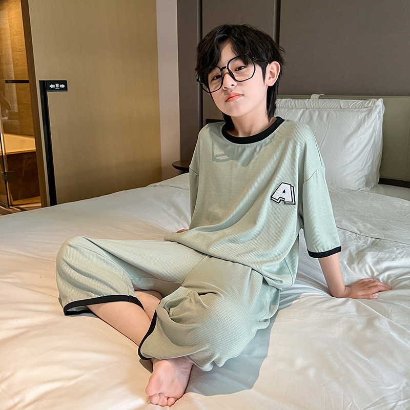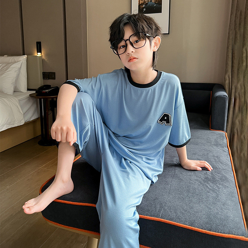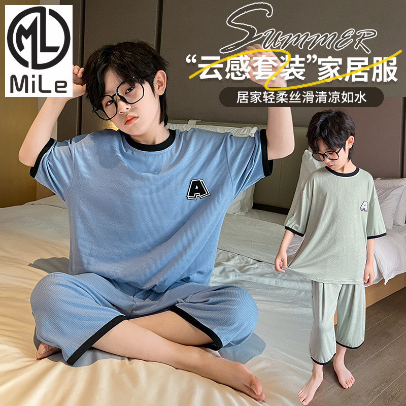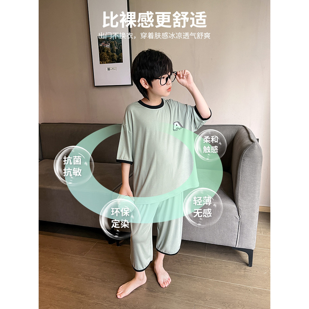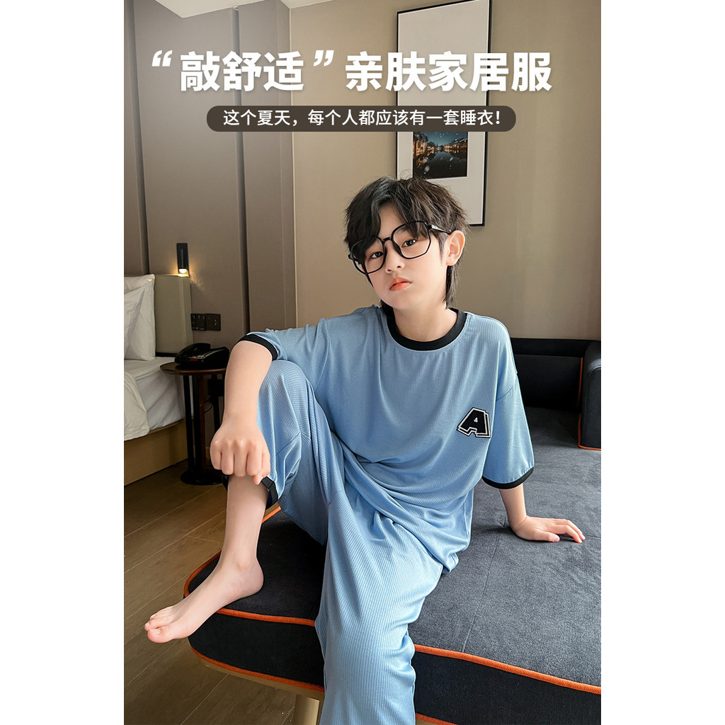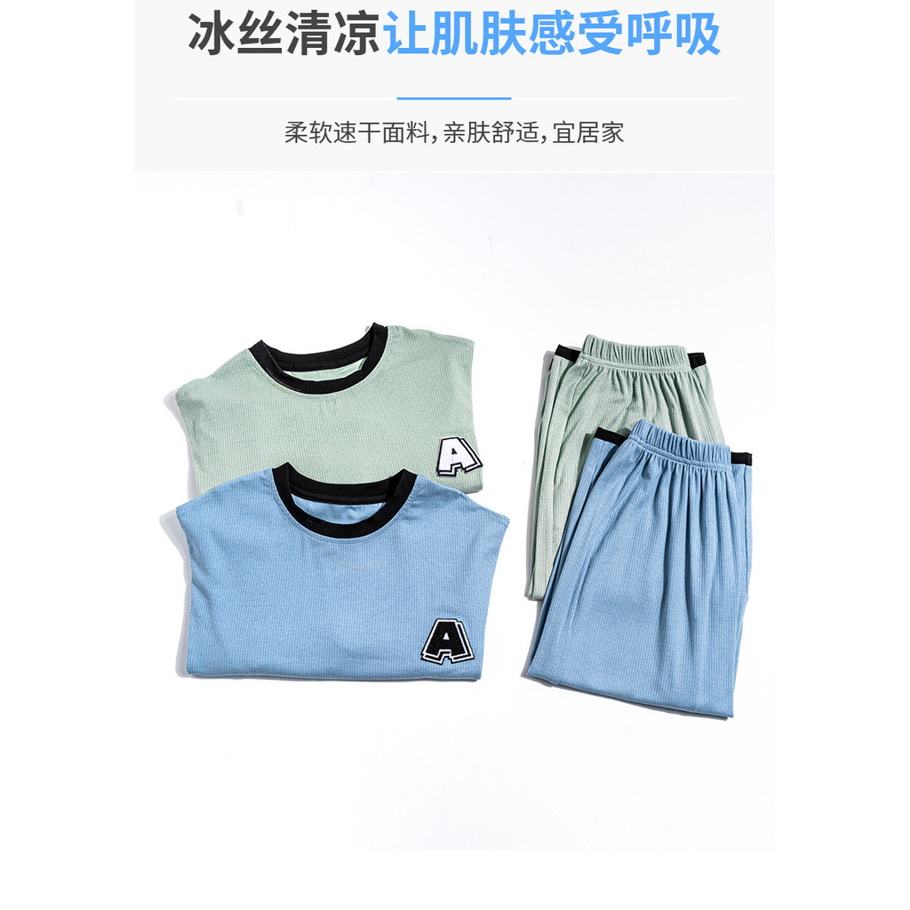 [มล] 120-160ซม ฤดูร้อนสไตล์ใหม่ผ้าไหมน้ําแข็งเสื้อผ้าเด็กบ้านชายกล