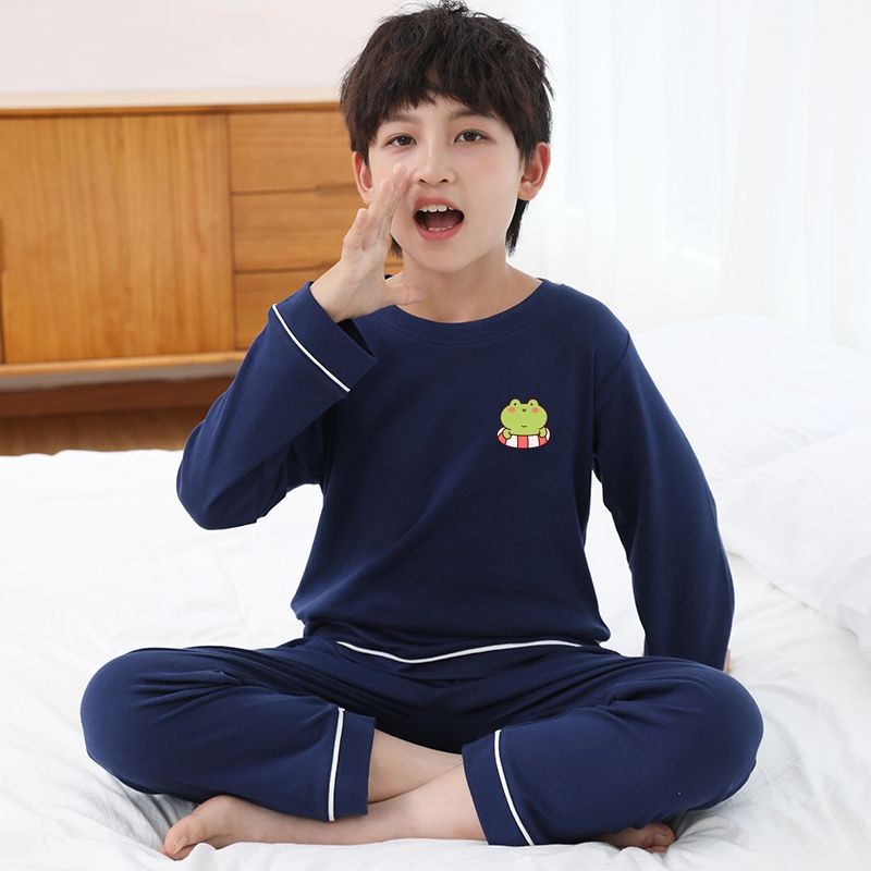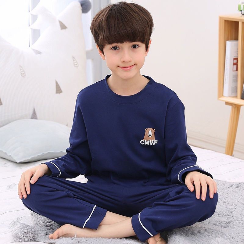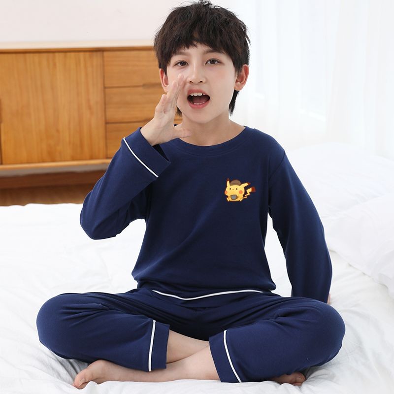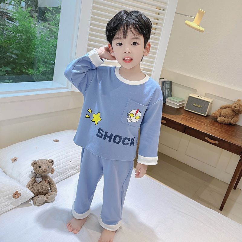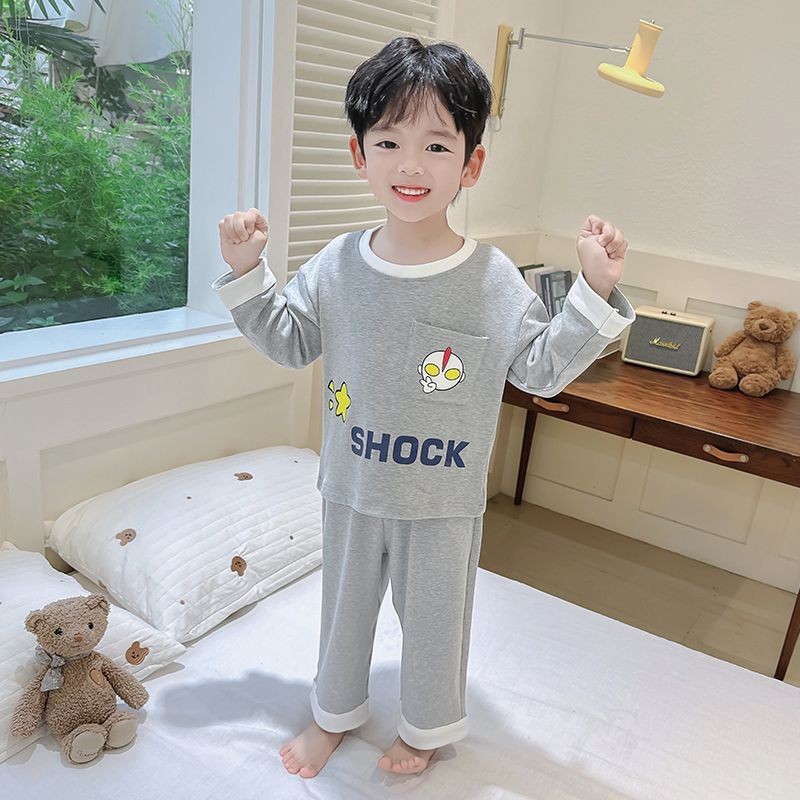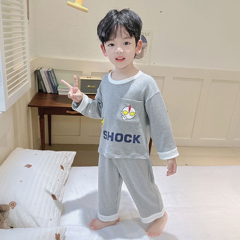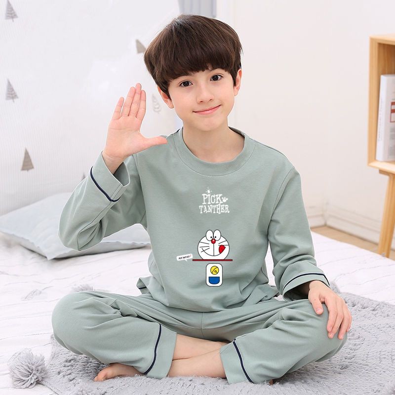 จัดส่งที่รวดเร็ว73-170ซม เด็กฤดูใบไม้ร่วงผ้าฝ้ายแท้การ์ตูนชุดขนาดกลางขนาดใหญ่ชายหญิงรอบคอแขนยาวฤดูใบไม้ร่วงเสื้อผ้ากางเกงขายาวชุดนอนเด็กเสื้อผ้าบ